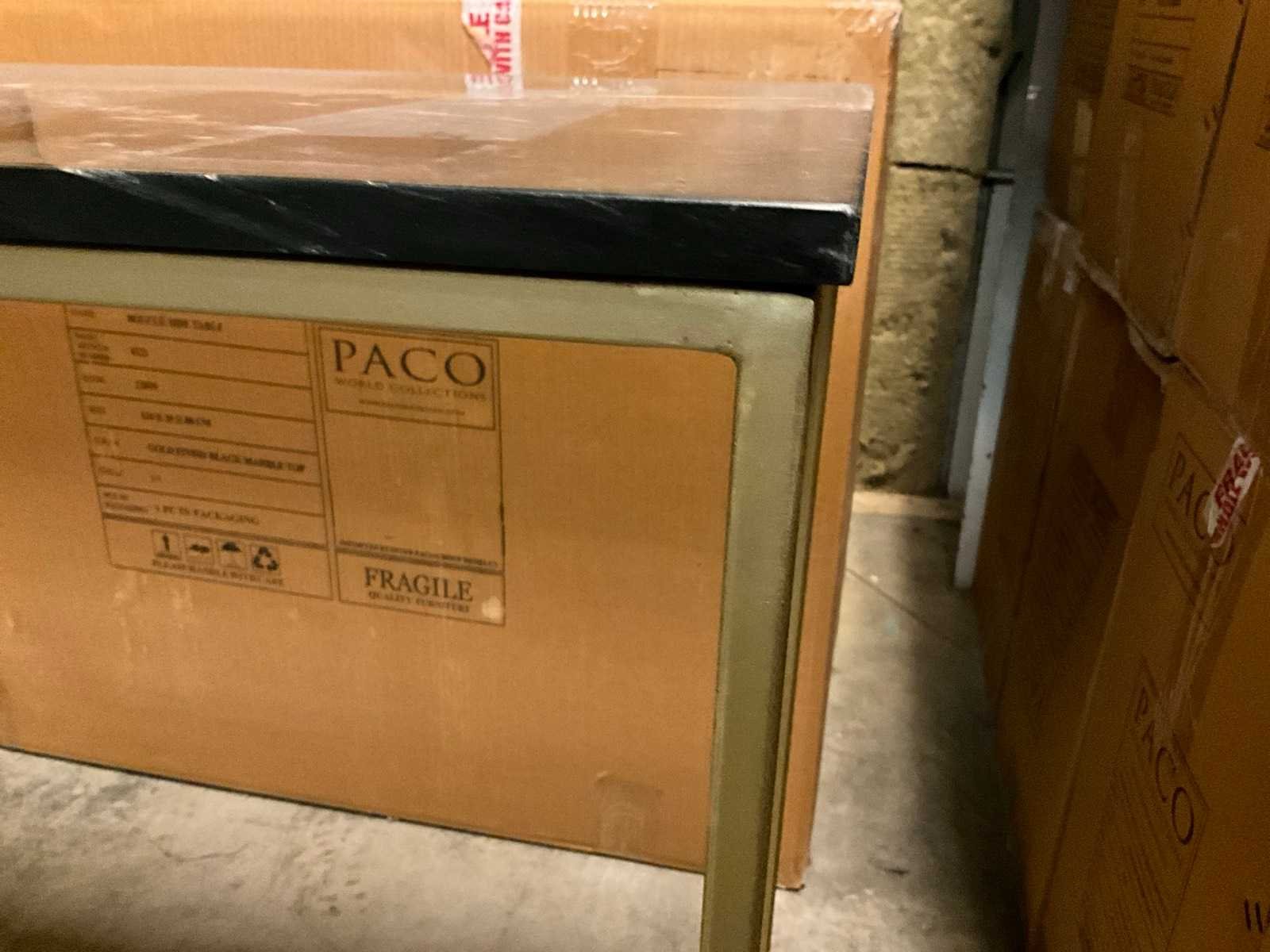 Marmeren blad Goudkleurig stalen onderstel Zware uitvoering Nieuw in doos Model: Boucle Lengte: 110cm Breedte: 35cm Hoogte: 85cm