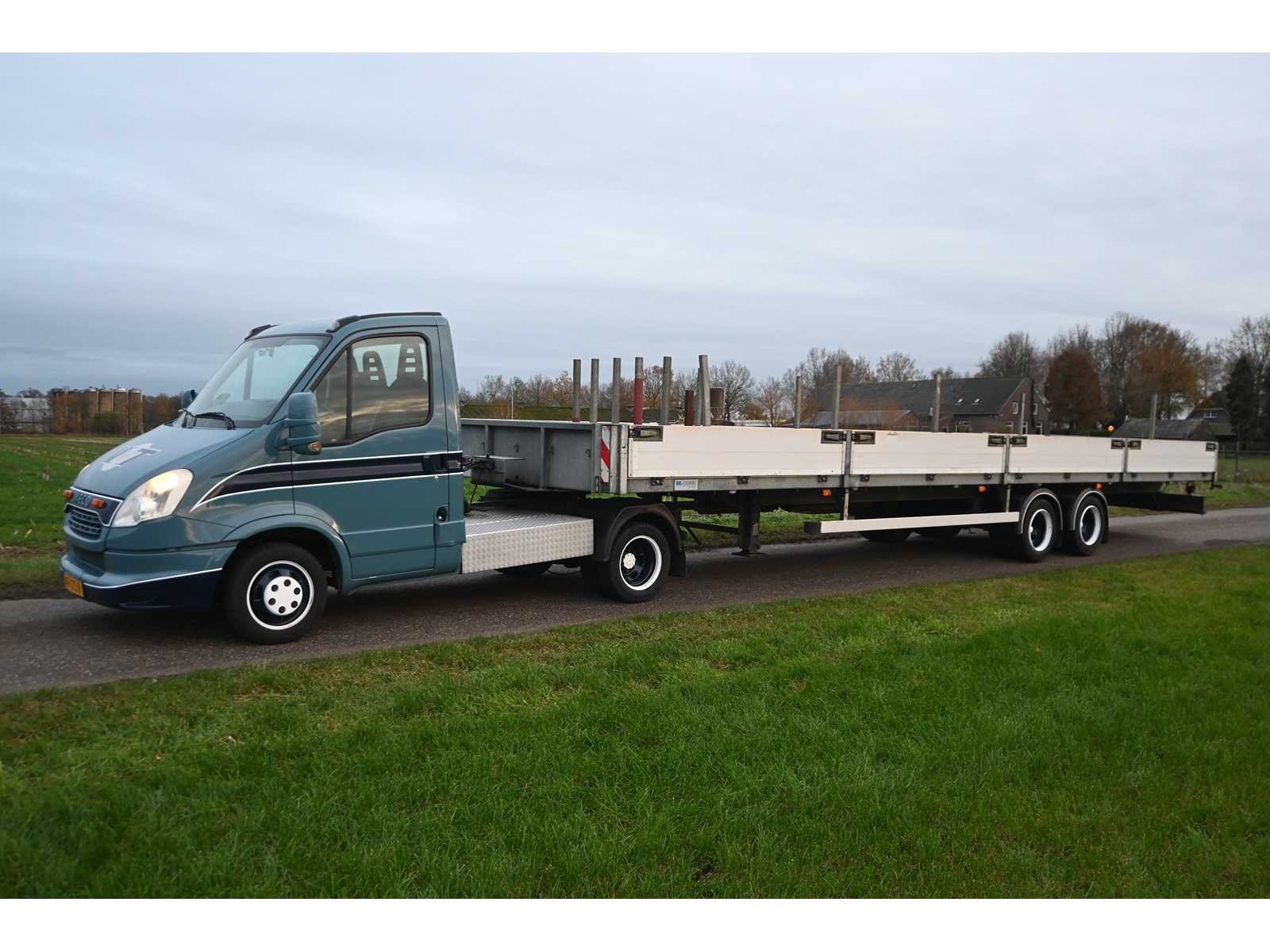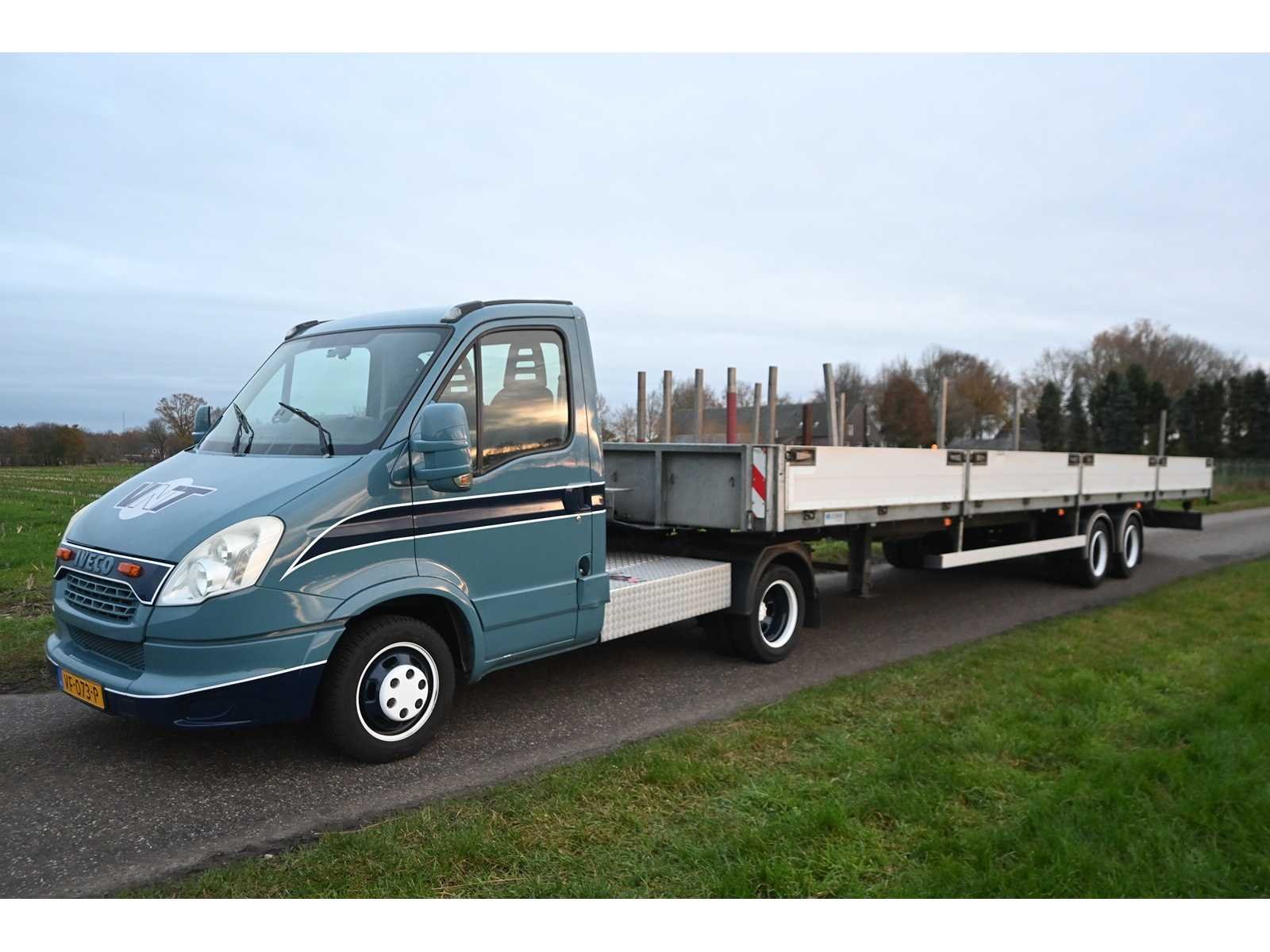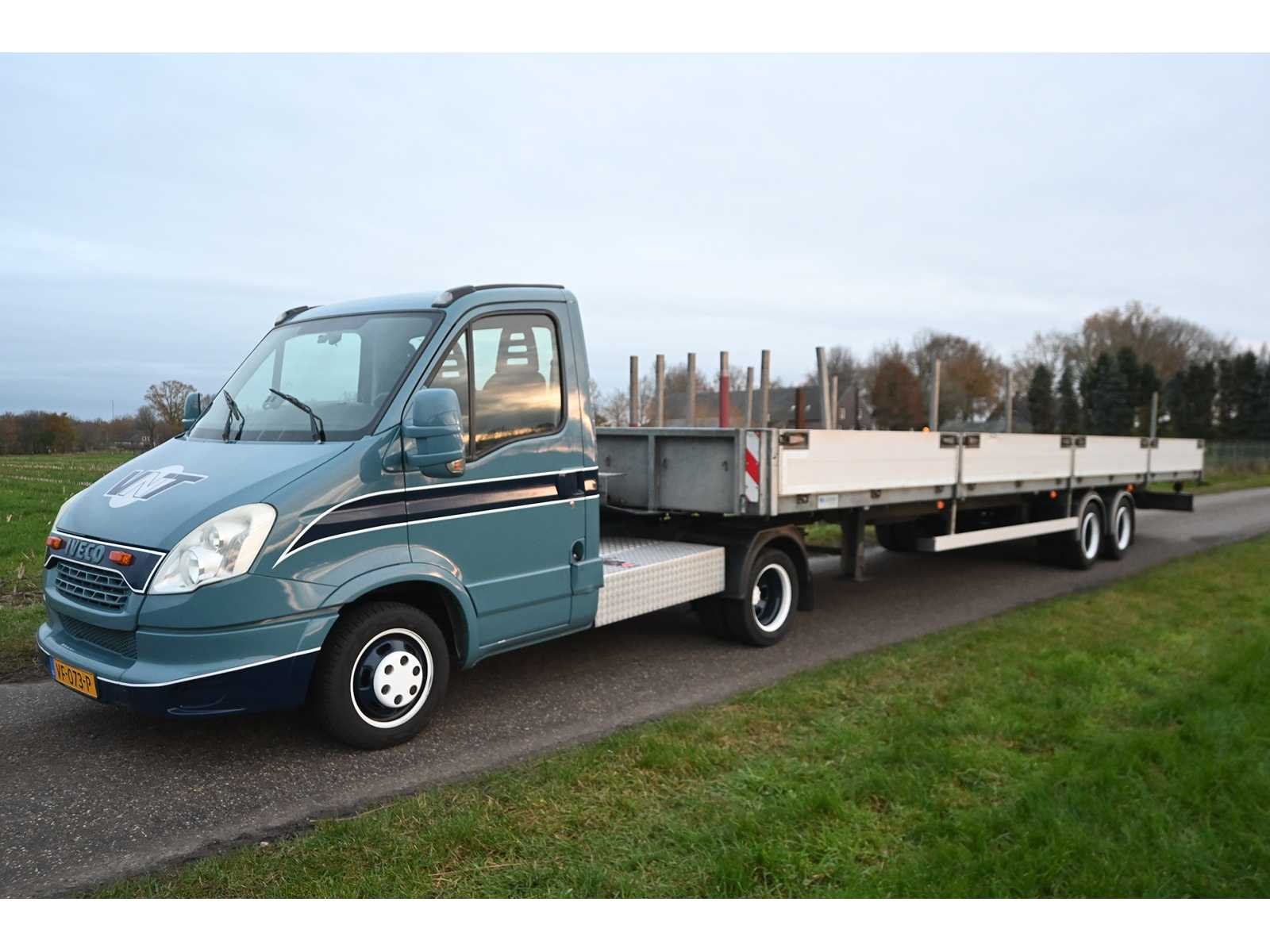 Kenteken trailer ON-29-TV. Afmeting laadbak trailer ca. L10035 cm x B250cm. Kenteken: VF-073-P Merk: Iveco Model: Daily 35C17 300 Afgelezen kilometerstand: 404622km Cilinderinhoud: 2998cc Vermogen (kW): 125kW Brandstof: diesel Datum eerste toelating: 2013-08-29 Datum eerste toelating (NL): 2013-08-29 APK vervaldatum: 2026-06-05 Transmissie: Handgeschakeld Aantal zitplaatsen: 3 Kleur: niet van toepassing Bruto BPM (NL): 12896 Ledig gewicht: 2030kg Laadvermogen: 7500kg Vermogen (pk): 170 Aantal cilinders: 4 Carrosserie: opleggertrekker Emissieklasse: 5 Kentekenpapieren compleet?: true Maximaal trekgewicht ongeremd: 750
