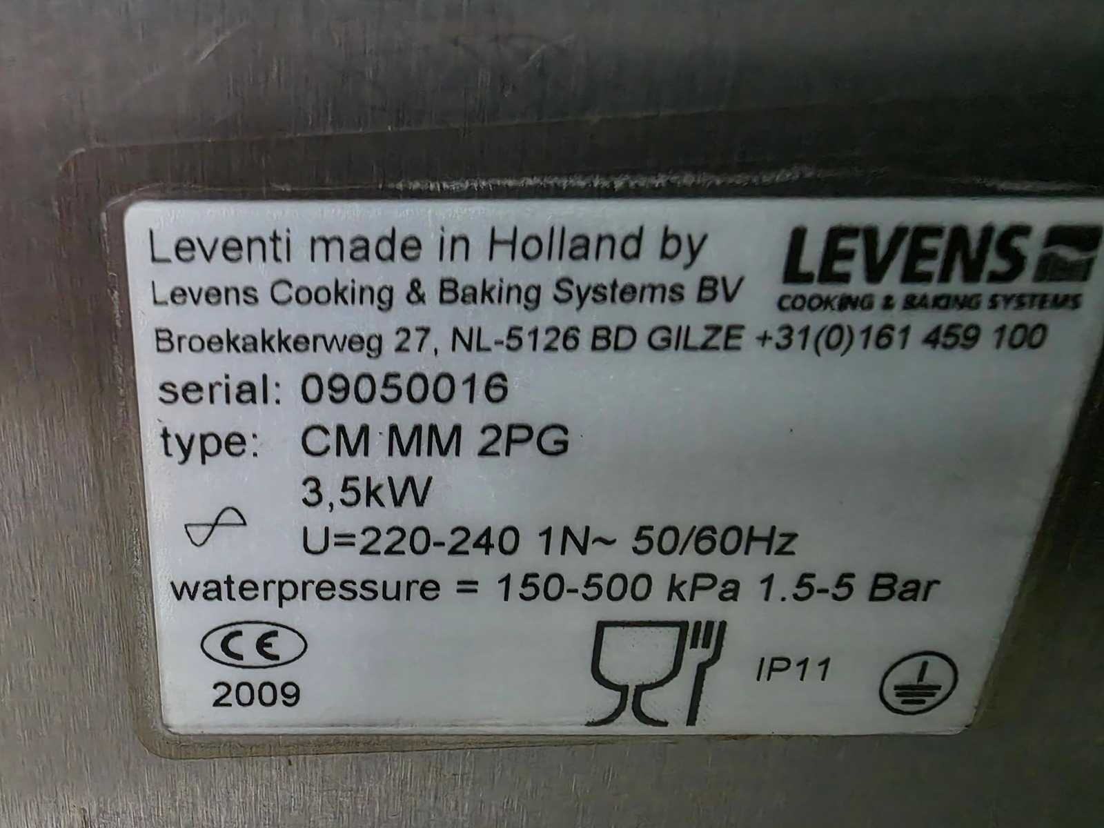 Heteluchtoven met stoomfunctie Merk: Leventi Type: Combimat Mastermind CM MM 2P6 Aansluiting: 230V Totale afmeting L: 98cm Totale afmeting Breedte: 60cm Totale afmeting Hoogte: 38cm