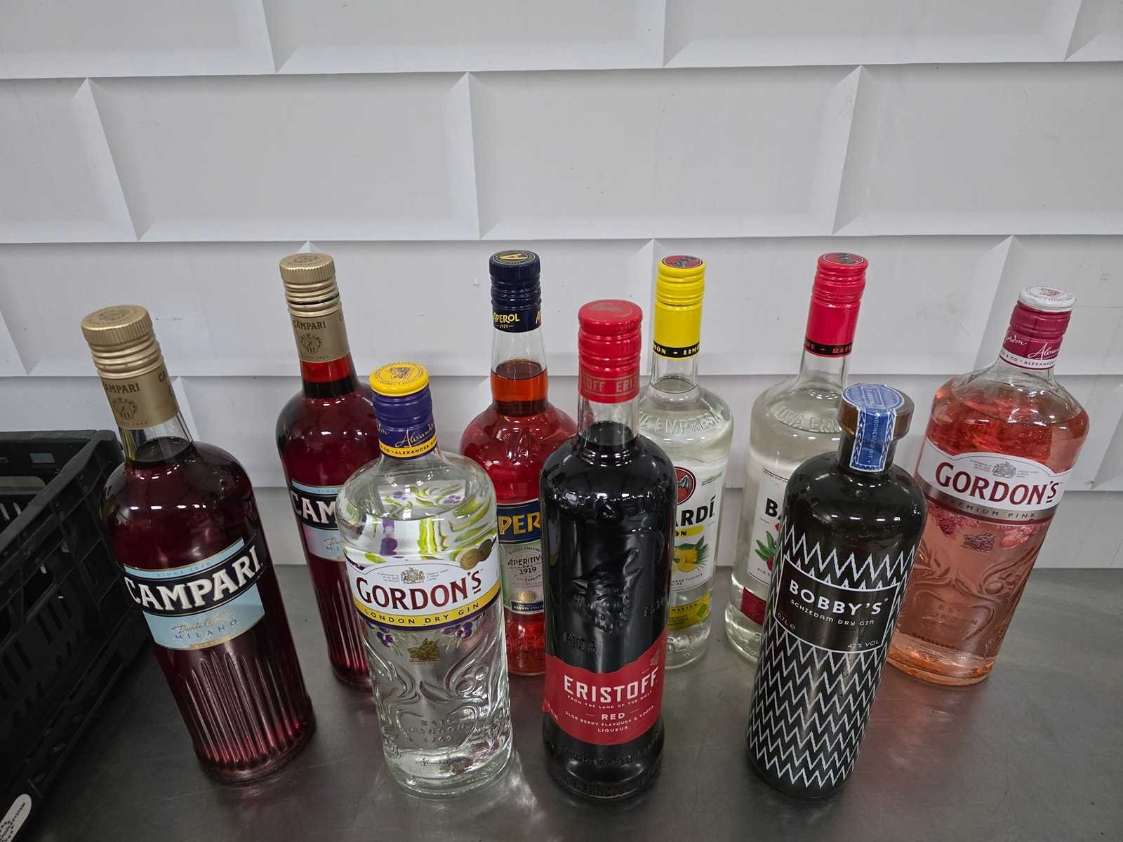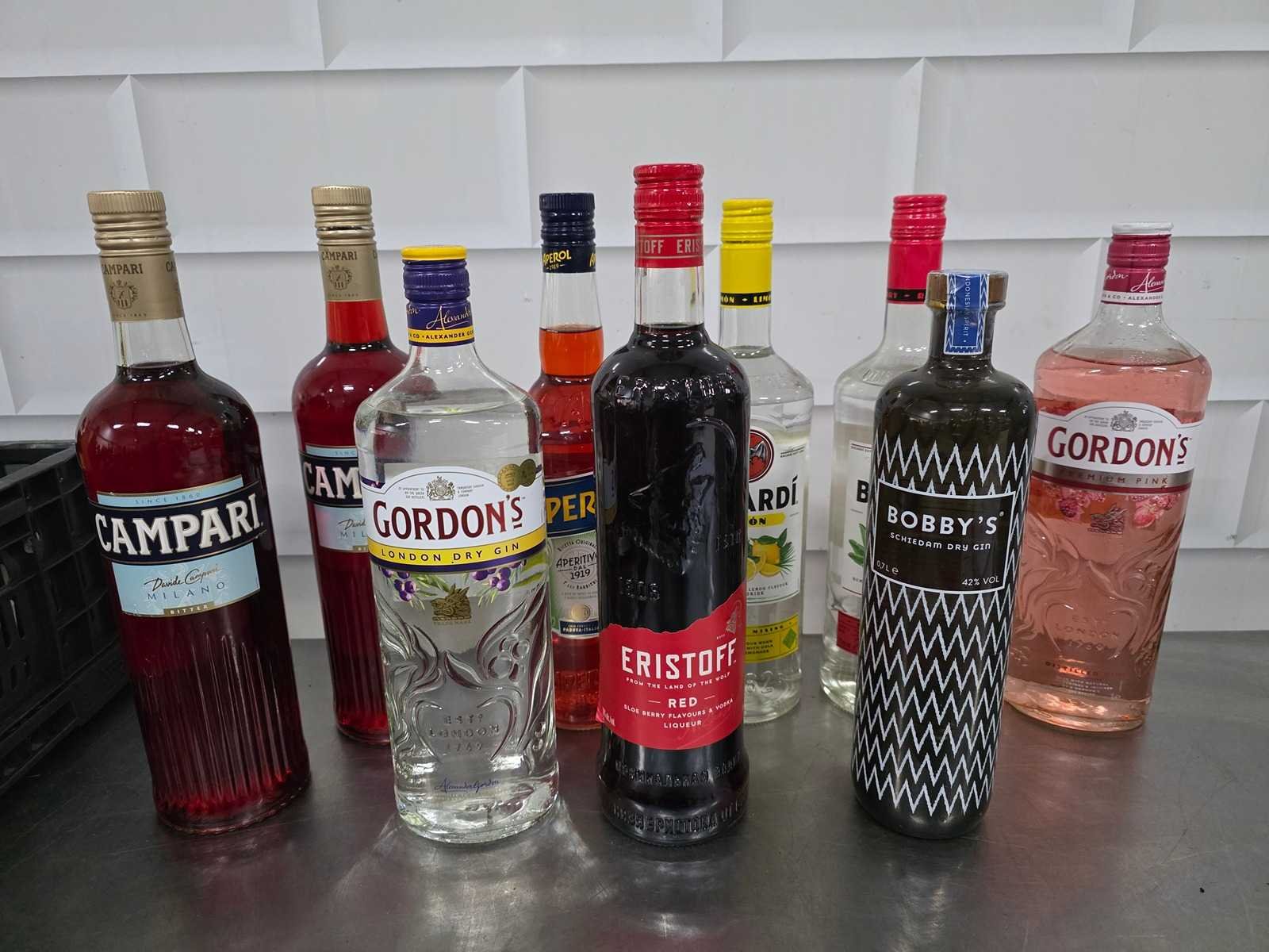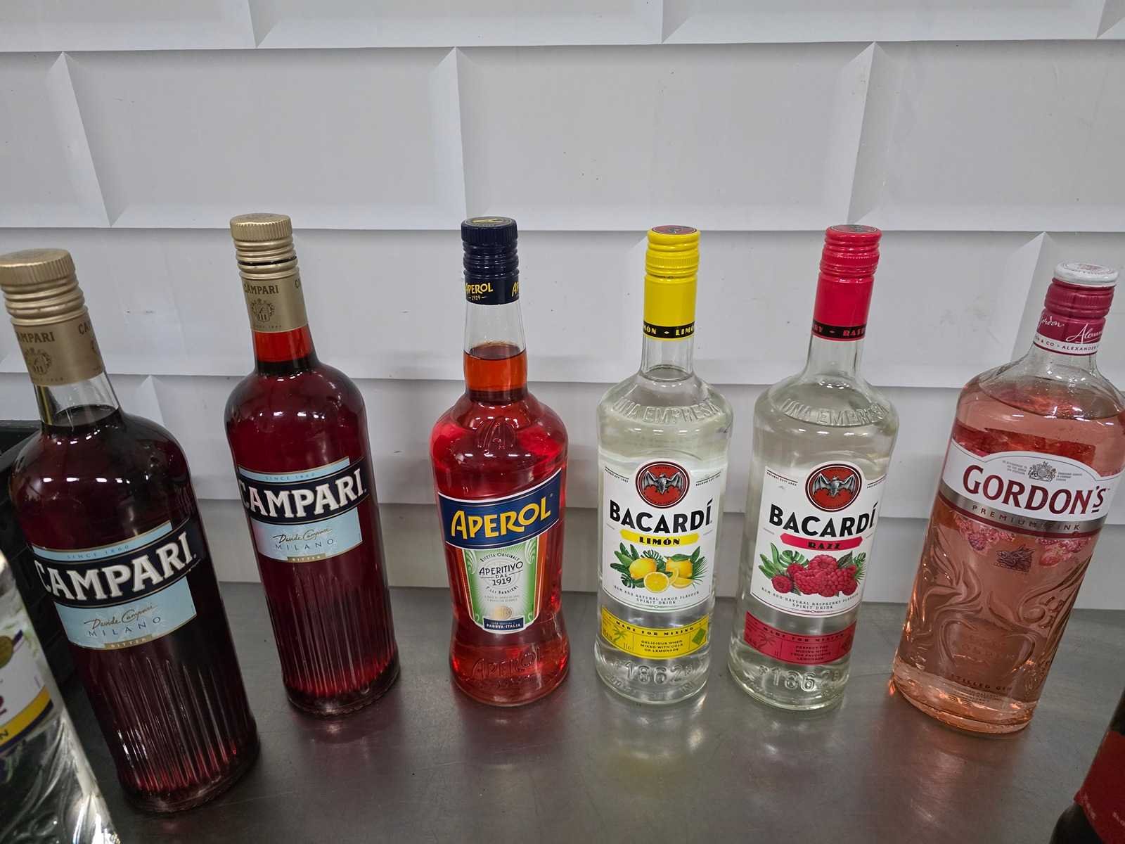 Flessen zijn ongeopend. Merk: Bacardi, Bobbi’s, Campari, etc.
