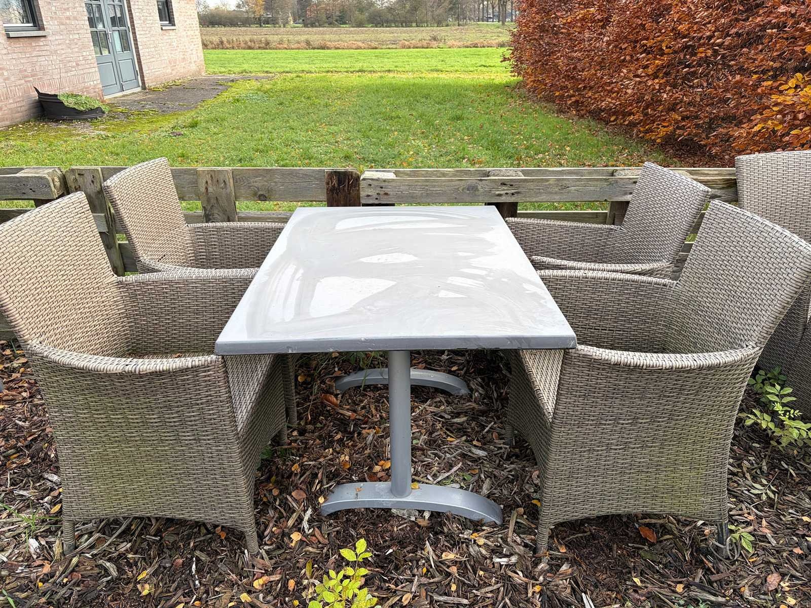 Bestaande uit 30 x Terrasstoel 7 x Terrastafel 120x80x70 cm Merk: Paco