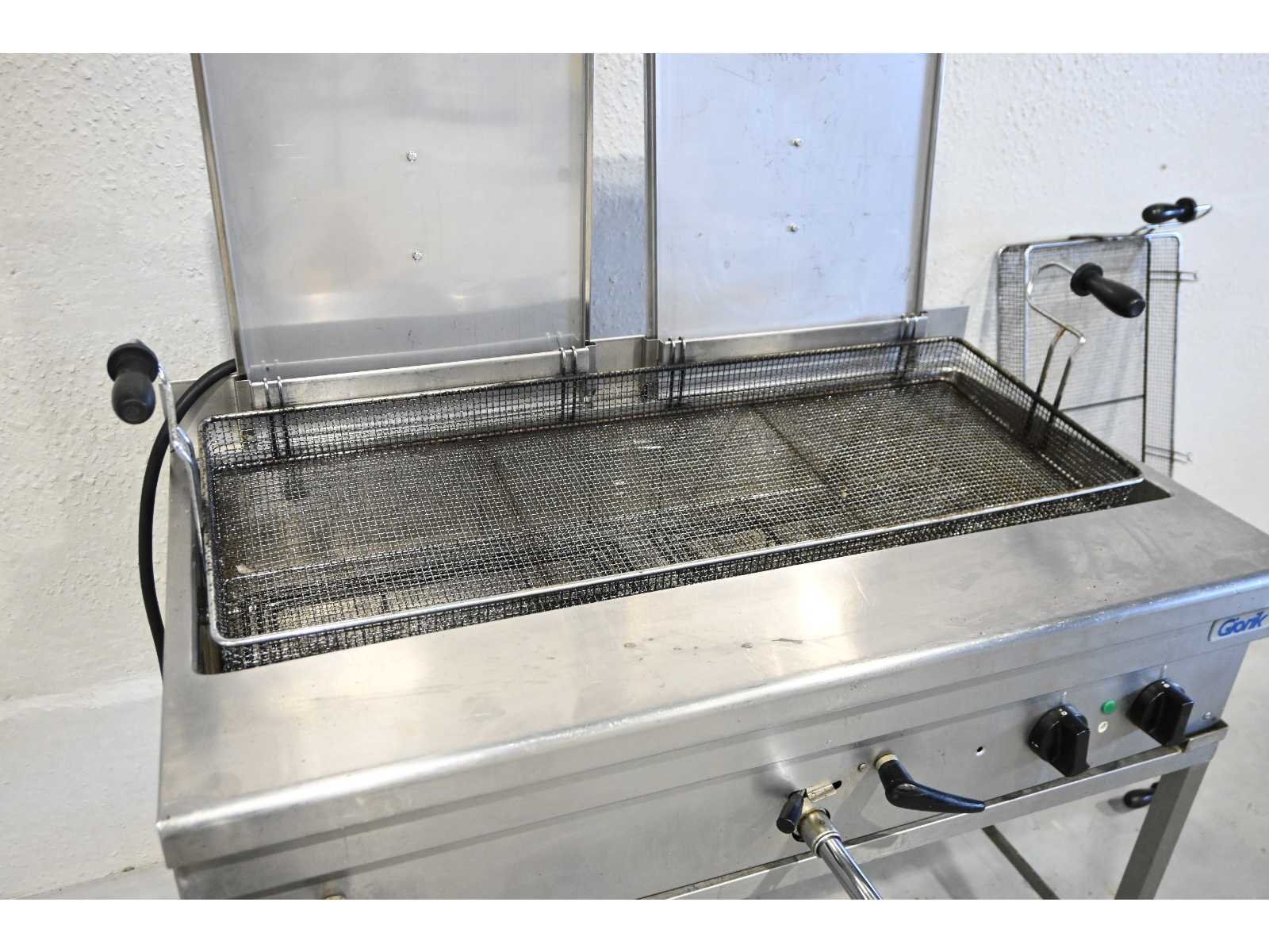 Inclusief 2 oliebollen manden. Merk: Giorik Model: FP27S Lengte: 105cm Breedte: 60cm Hoogte: 87cm Vermogen (kW): 10 Spanning: 400
