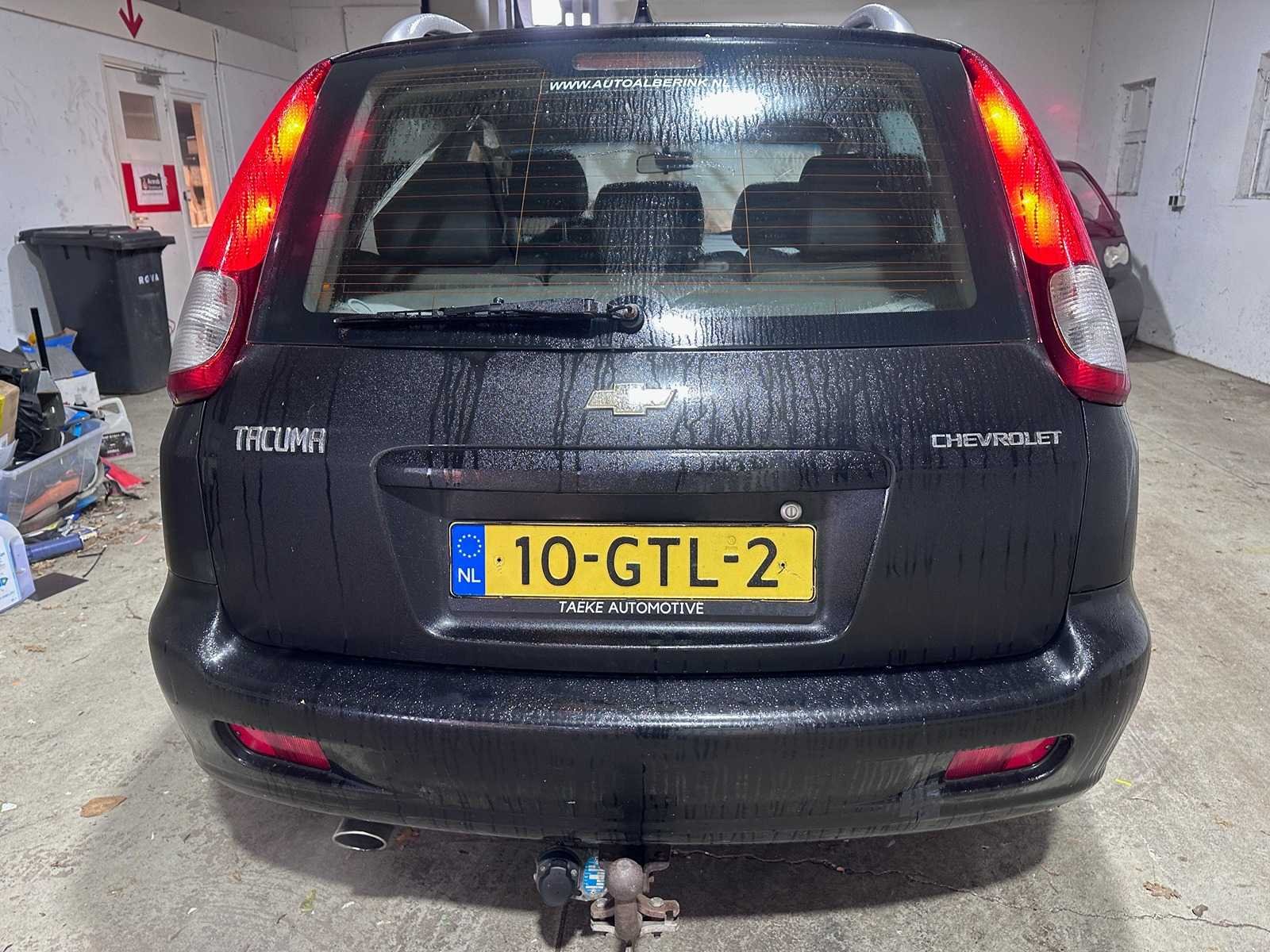 Kenteken: 10-GTL-2 Merk: Chevrolet Model: Tacuma Type: 1.6-16V Style Afgelezen kilometerstand: 164438km Cilinderinhoud: 1598cc Vermogen (kW): 79kW Chassisnummer: KL1UF756J8K886198 Laadvermogen: 0kg NAP status: Logisch Datum eerste toelating: 2008-09-03 Datum eerste toelating (NL): 2008-09-03 APK vervaldatum: 2025-11-01 Aantal zitplaatsen: 5 Kleur: zwart Emissieklasse: 4 Aantal deuren: 4 Aantal sleutels: 2 Ledig gewicht: 1247kg Bruto BPM (NL): 5188€ Aantal cilinders: 4 Carrosserie: stationwagen Onderhoudshistorie: JA Carfax Link: https://was.carfax.eu/v0/api/ccdid/5100016408/svc/201/vinreg/10GTL2/checksum/eyJhbGciOiJIUzI1NiIsInR5cCI6IkpXVCJ9.eyJleHAiOjE3Njc3MDUwODV9.0YZi8x2en5NF7QQ3qJHndyKbbxQ0OCLqURNkAZiCa5Q