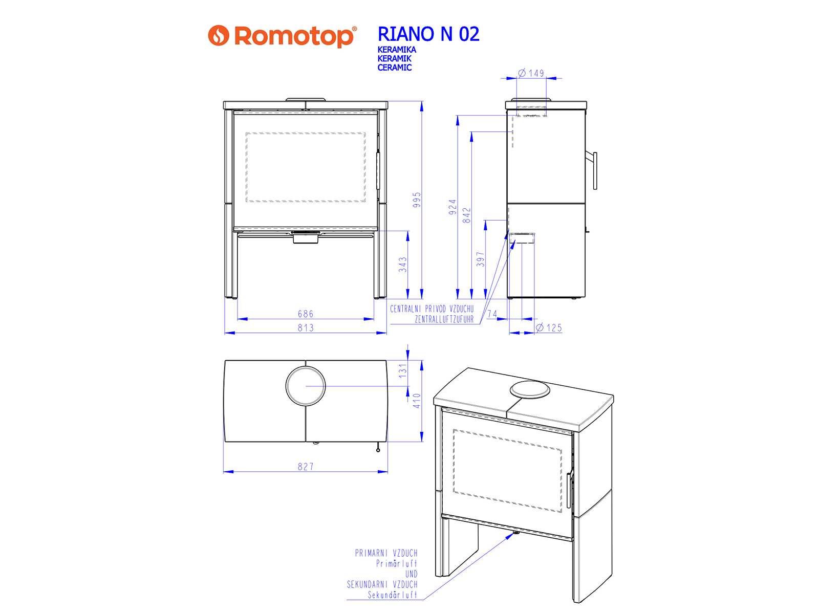 Rookgasafvoer materiaal op locatie verkrijgbaar. Offerte voor installatie mogelijk. Merk: Romotop Type: Riano N 02 Rendement: 79,4% Vuurzicht: Front Rookgasaansluiting: 150mm Bovenaansluiting: true Vrijstaand: true Vermogen: 11,7kW Totale afmeting lxbxh: 434x834x904mm Eigen gewicht: 155kg