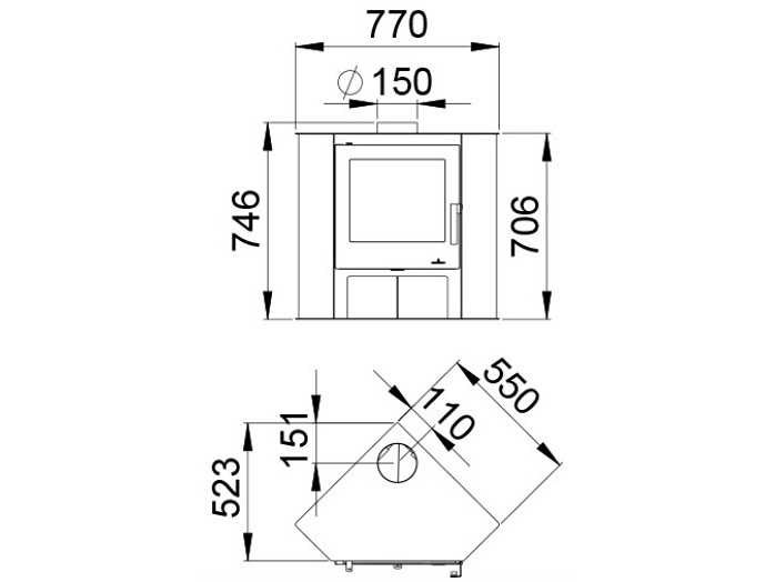 Rookgasafvoer materiaal op locatie verkrijgbaar. Offerte voor installatie mogelijk. Merk: Bronpi Type: Lerma Hoek Rendement: 76% Vuurzicht: Front Rookgasaansluiting: 150mm Bovenaansluiting: true Vrijstaand: true Vermogen: 9kW Totale afmeting lxbxh: 550x770x706mm Eigen gewicht: 99kg
