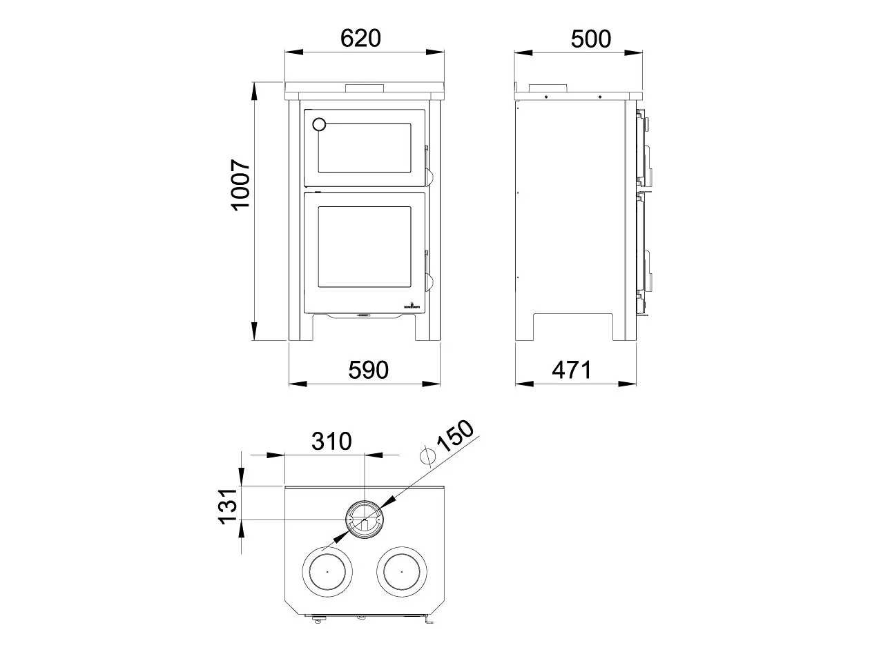 Rookgasafvoer materiaal op locatie verkrijgbaar. Offerte voor installatie mogelijk. Merk: Boreal Type: ECH9000 Oven + Kookplaat - Vrijstaand Rendement: 82% Vuurzicht: Front Rookgasaansluiting: 150mm Bovenaansluiting: true Vrijstaand: true Vermogen: 12kW Totale afmeting lxbxh: 500x620x1007mm Eigen gewicht: 145kg