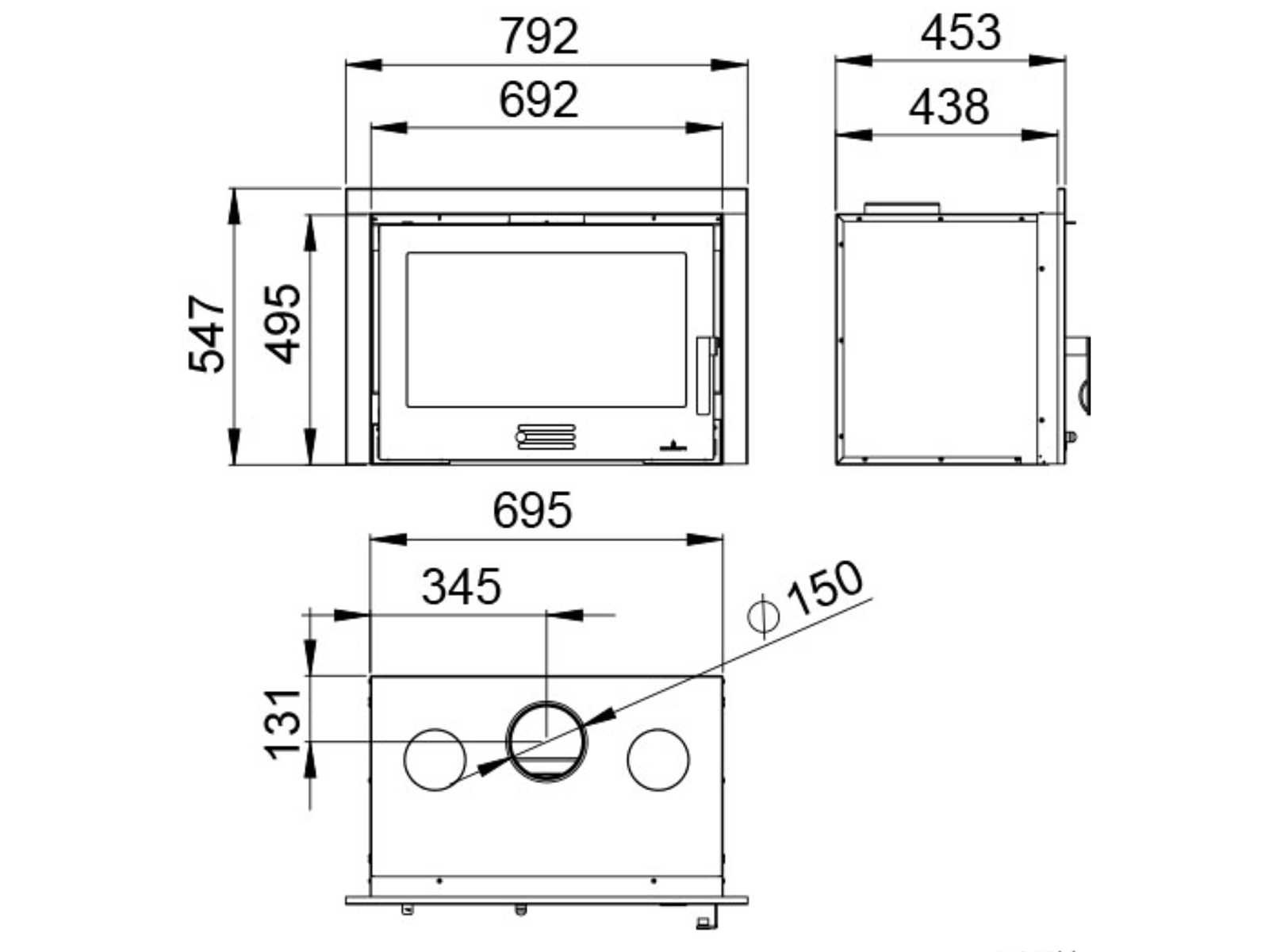 Rookgasafvoer materiaal op locatie verkrijgbaar. Offerte voor installatie mogelijk. Merk: Bronpi Type: Rioja - Inzethaard - Gietijzer Rendement: 80% Vuurzicht: Front Rookgasaansluiting: 150mm Bovenaansluiting: true Vermogen: 13kW Totale afmeting lxbxh: 438x792x547mm Inbouw: true Eigen gewicht: 85kg