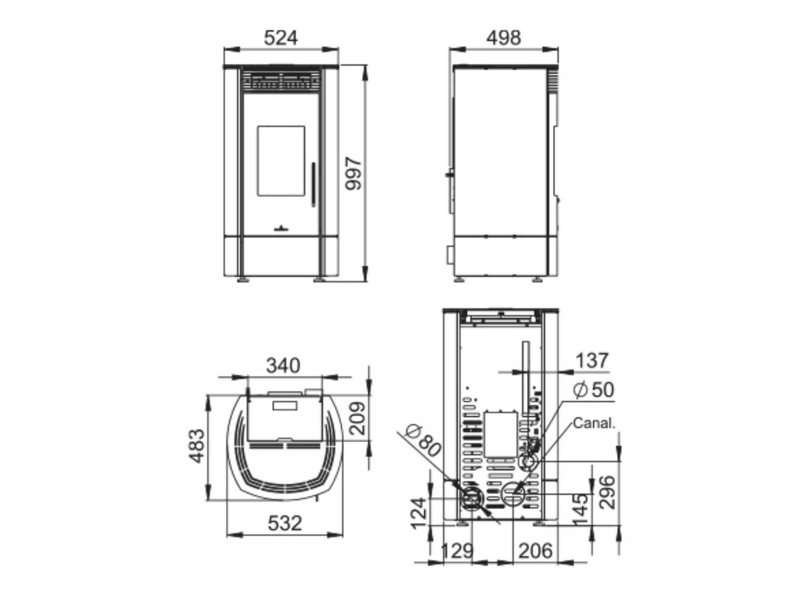 Rookgasafvoer materiaal op locatie verkrijgbaar. Offerte voor installatie mogelijk. Merk: Bronpi Type: Trebol - Vrijstaand Eigen gewicht: 95kg Vrijstaand: true Vermogen: 9kW Totale afmeting lxbxh: 498x524x997mm Rookgasaansluiting: 80mm Achteraansluiting: true Vuurzicht: Front Lengte: 498 Rendement: 90 - 93% Breedte: 524 Hoogte: 997