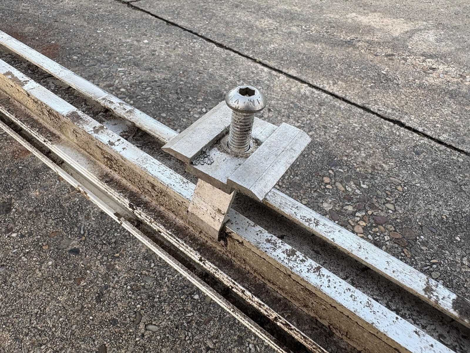 Bestaande uit: * 34 x 6.92m montage rail * 170 x midden klem * 68 x eind klem * 204 x stokschroef compleet Let op! het betreft hier de onderconstructie voor een golfplaten dak, dus niet de zonnepanelen. conditie: gebruikt reeds gedemonteerd en transportklaar op een pallet palletgrootte: ca 690x120 cm
