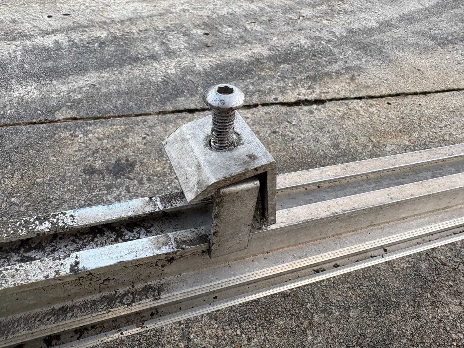 Bestaande uit: * 34 x 6.92m montage rail * 170 x midden klem * 68 x eind klem * 204 x stokschroef compleet Let op! het betreft hier de onderconstructie voor een golfplaten dak, dus niet de zonnepanelen. conditie: gebruikt reeds gedemonteerd en transportklaar op een pallet palletgrootte: ca 690x120 cm
