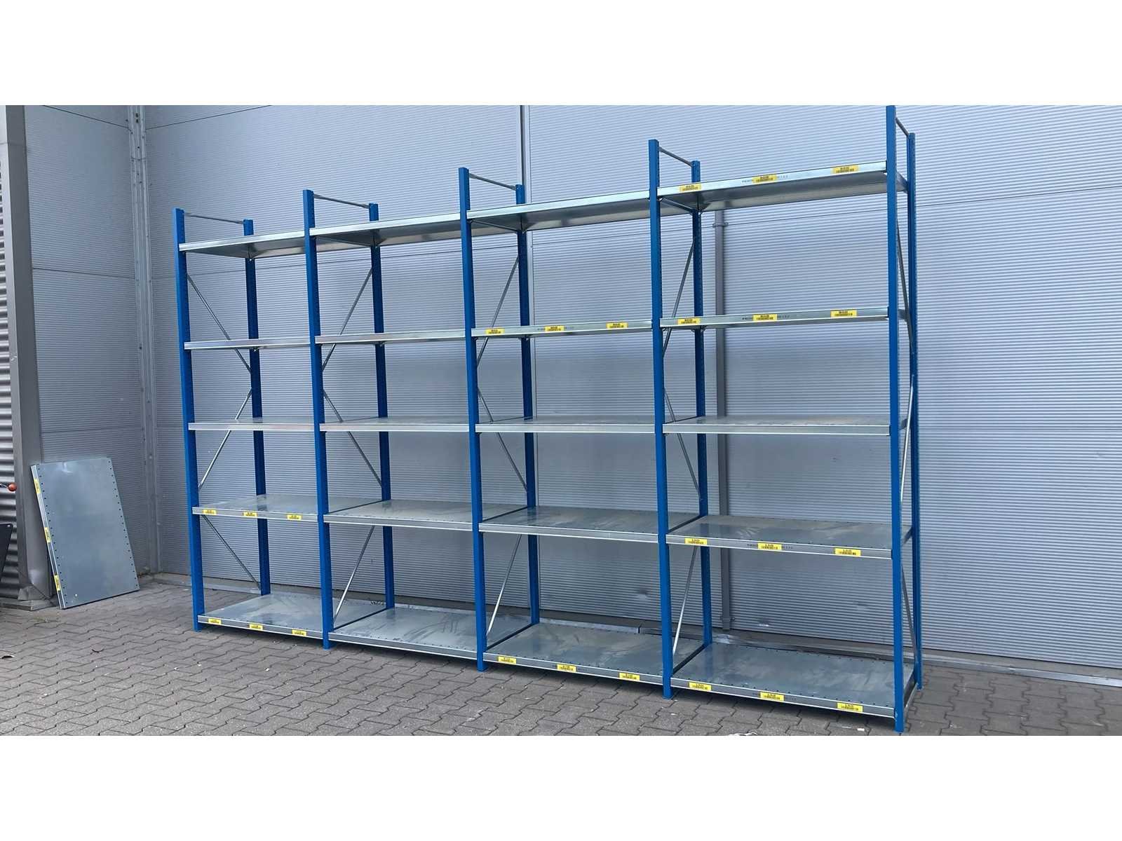 10x staander 2000x600mm; 72x legbord 1200x600mm; gebundeld; gebruikt; staanders kunnen blauw of gegalvaniseerd zijn; staanders kunnen open of dicht zijn; Merk: Nedcon Aantal secties: 9 Sectie afm. b: 1200mm Sectie diepte: 600mm Sectie afm. h: 2000mm Aantal staanders: 10 Aantal legborden: 72 Demontabel: true