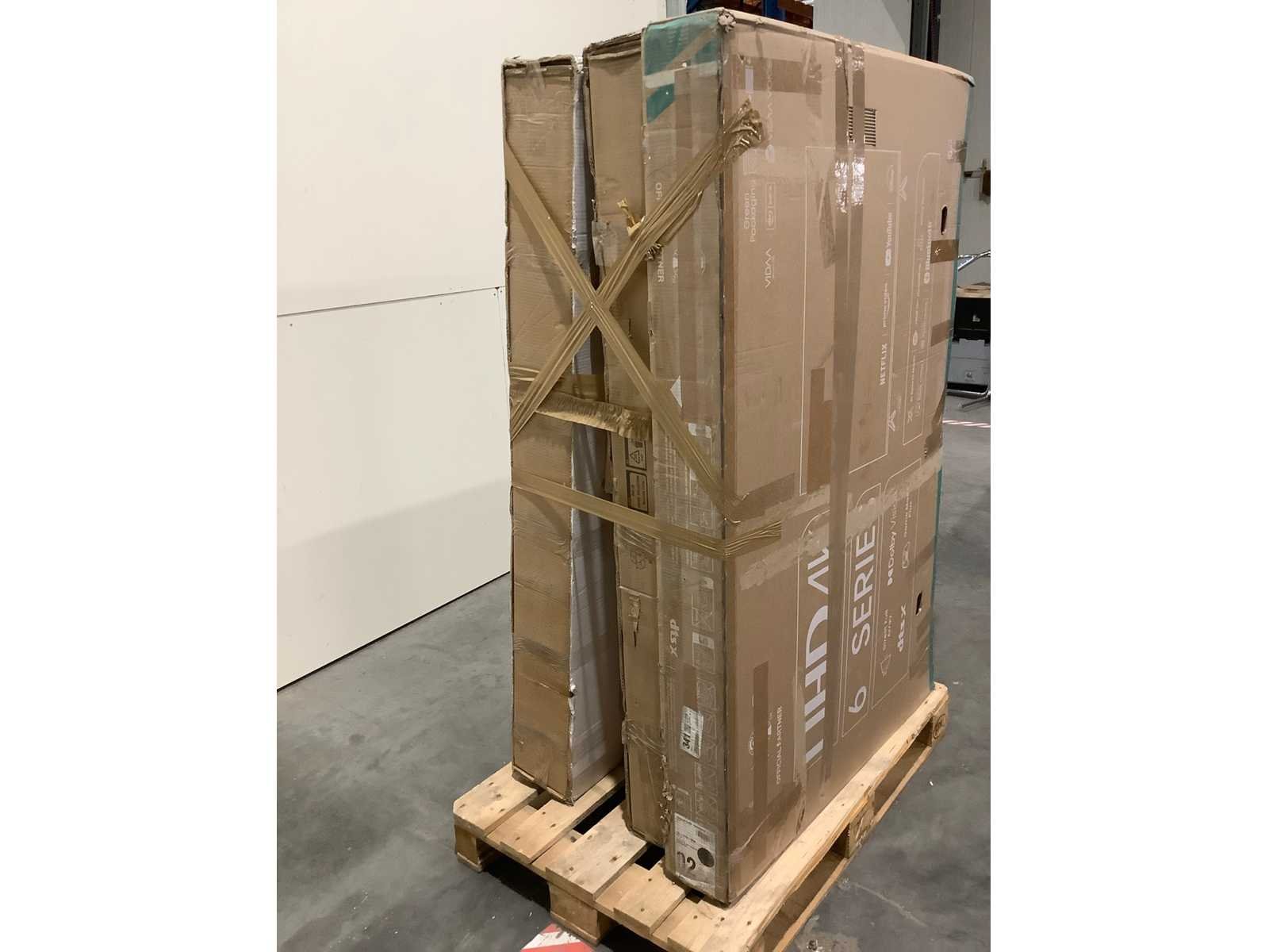 Dit betreft een partij televisies retourgoederen van een grote online retailer. De partij bestaat uit diverse diverse maten televisies. Aantal stuks: 5. Retailwaarde: €2057,- De televisies zijn niet werkend en zijn te gebruiken voor onderdelen. Kom op de kijkdag om te om zo een goed beeld te krijgen van de reden van retour. Zie foto's voor lijst met inhoud. Bezorgtermijn 14 dagen Merk: Pallet Retourgoederen - Televisies