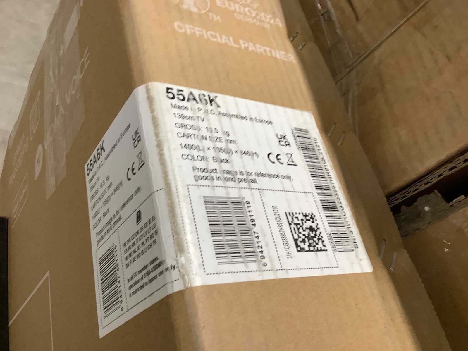 Dit betreft een partij televisies retourgoederen van een grote online retailer. De partij bestaat uit diverse diverse maten televisies. Aantal stuks: . Retailwaarde: De televisies zijn niet werkend en zijn te gebruiken voor onderdelen. Kom op de kijkdag om te om zo een goed beeld te krijgen van de reden van retour. Zie foto's voor lijst met inhoud. Merk: Pallet Retourgoederen
