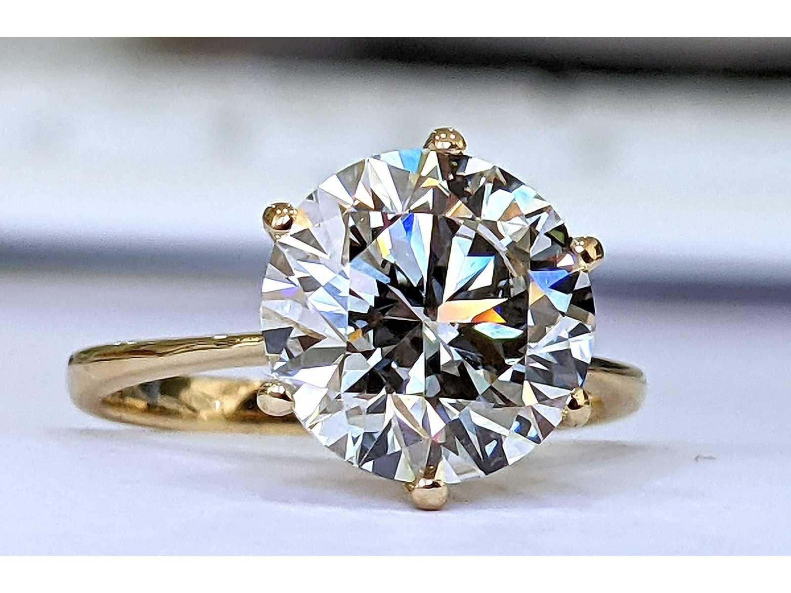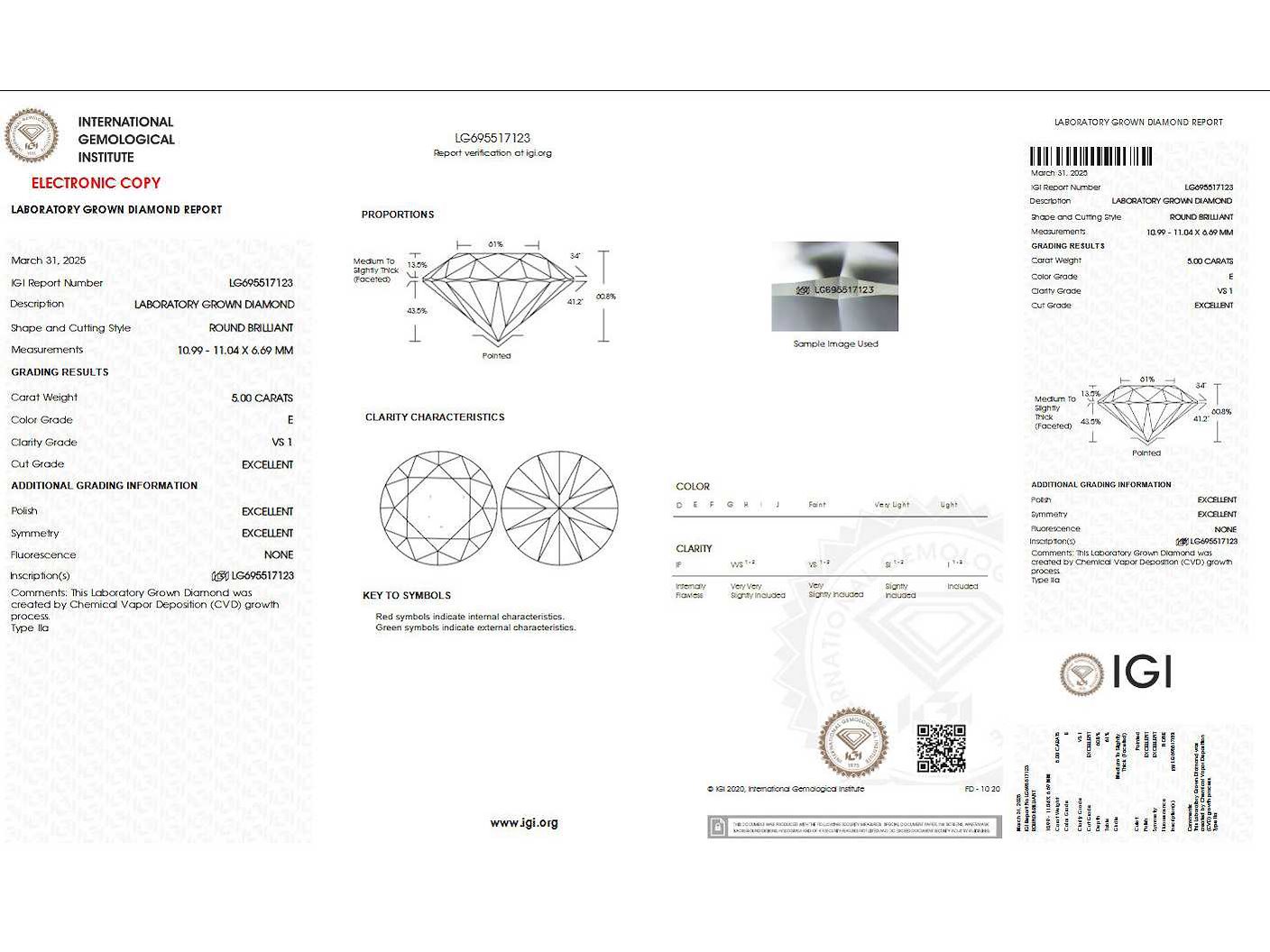 Ongebruikt Vorm: rond Briljant Gewicht: 5,00 CRT Kleur: E Duidelijkheid: VS1 Pools: Uitstekend Symmetrie: Uitstekend Rapportnummer IGI 18k geel goud Met IGI-certificaat Bezichtiging op afspraak Product type: 18 karaat geel goud Kleur diamant: E Slijpvorm diamant: Rond Briljant Ringmaat: 52 Slijpvorm: rond Certificaat: International Gemological Institute (IGI) Kleur: VS1 Materiaal: 18 karaat geel goud Lage schatting: 9300€ Hoge schatting: 9900€