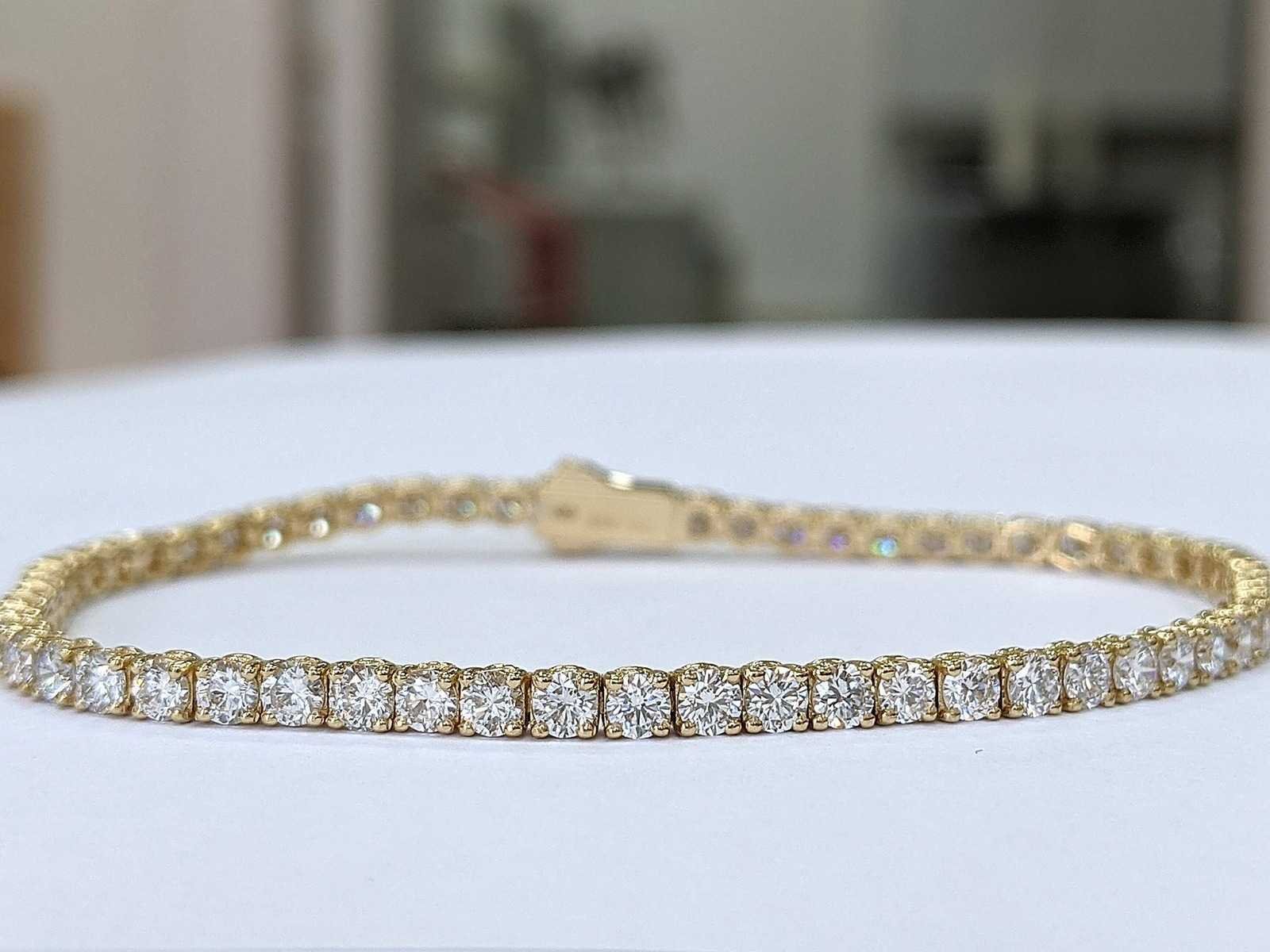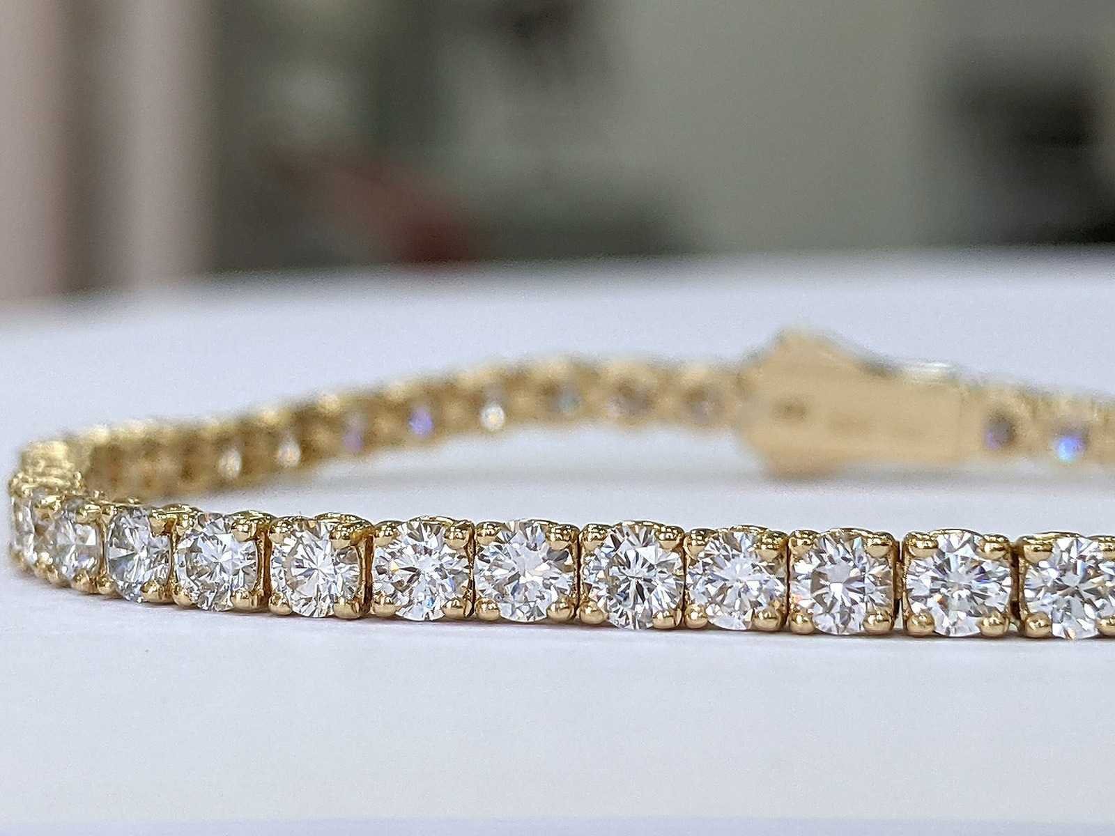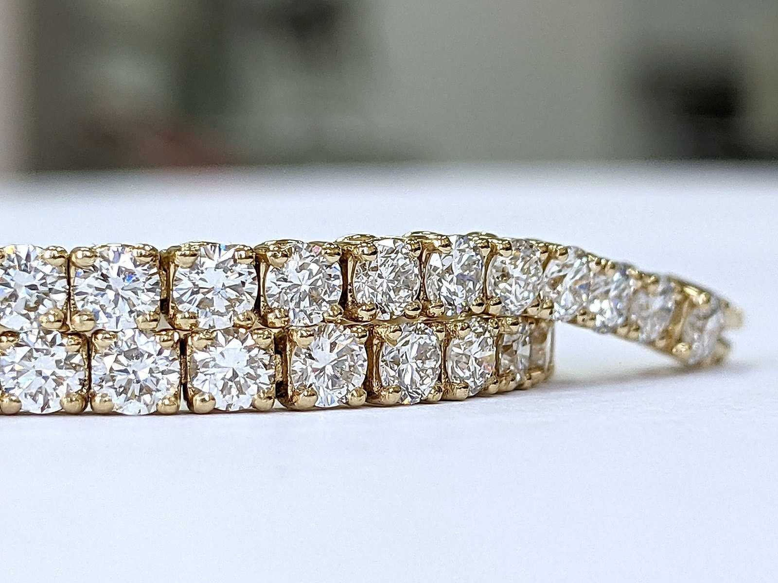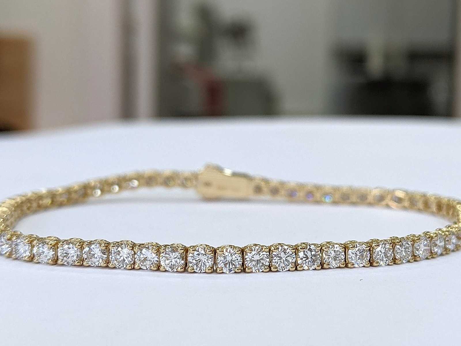 Geslepen: Rond Brilliant Karaat: 6,74 cttw / 54 stenen Kleur: Kleurloos (E - F) Duidelijkheid: VVS Grootte: 18cm Bezichtiging op afspraak Materiaal: Geelgoud Certificaat: Ja Lage schatting: 7800€