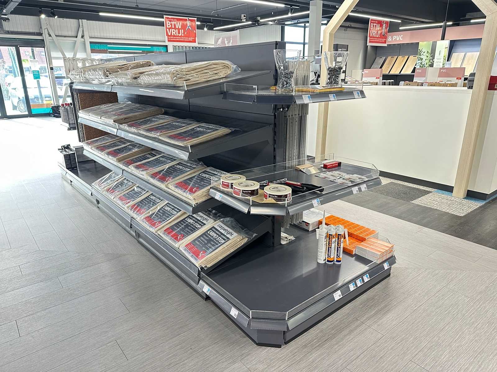 Deze stalen vrijstaande dubbelzijdige winkelstelling wordt verkocht exclusief inhoud. Deze wordt apart verkocht, kavel 3. Afmeting l: 4000mm Afmeting b: 1300mm Afmeting h: 1500mm Staal: true