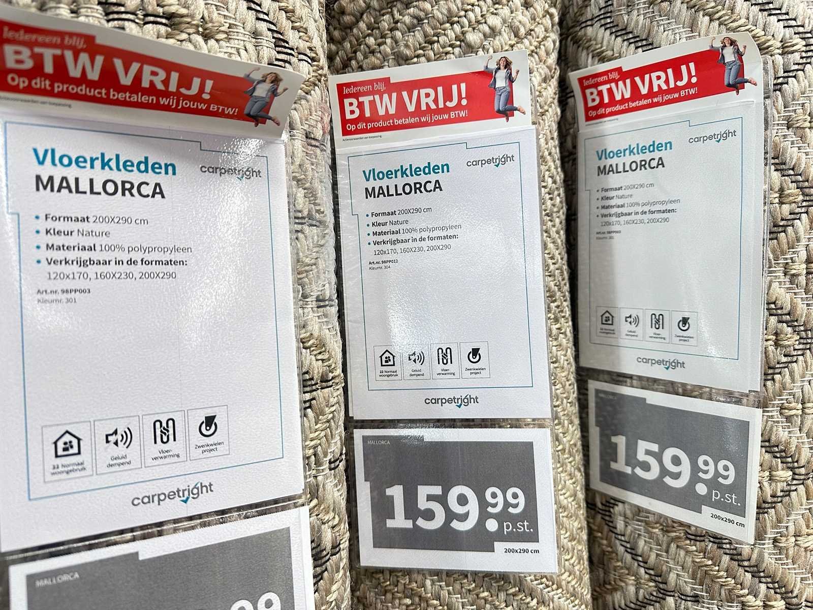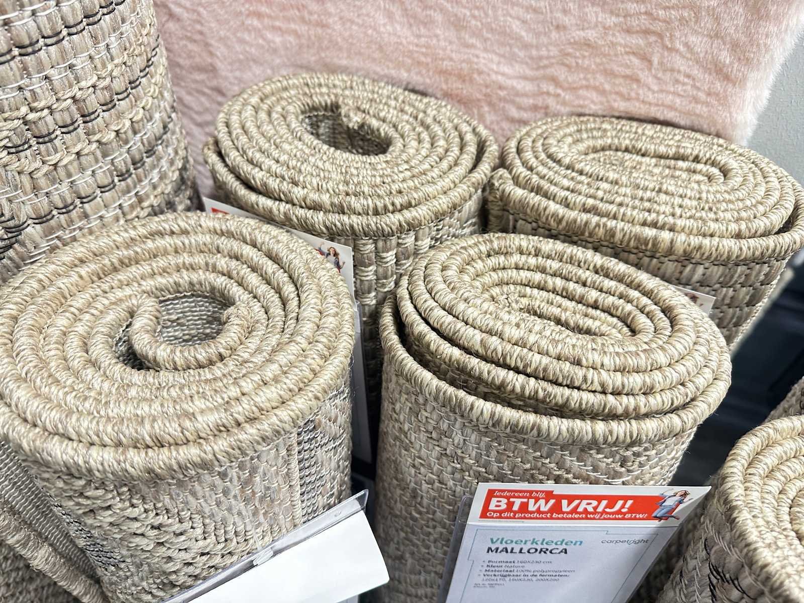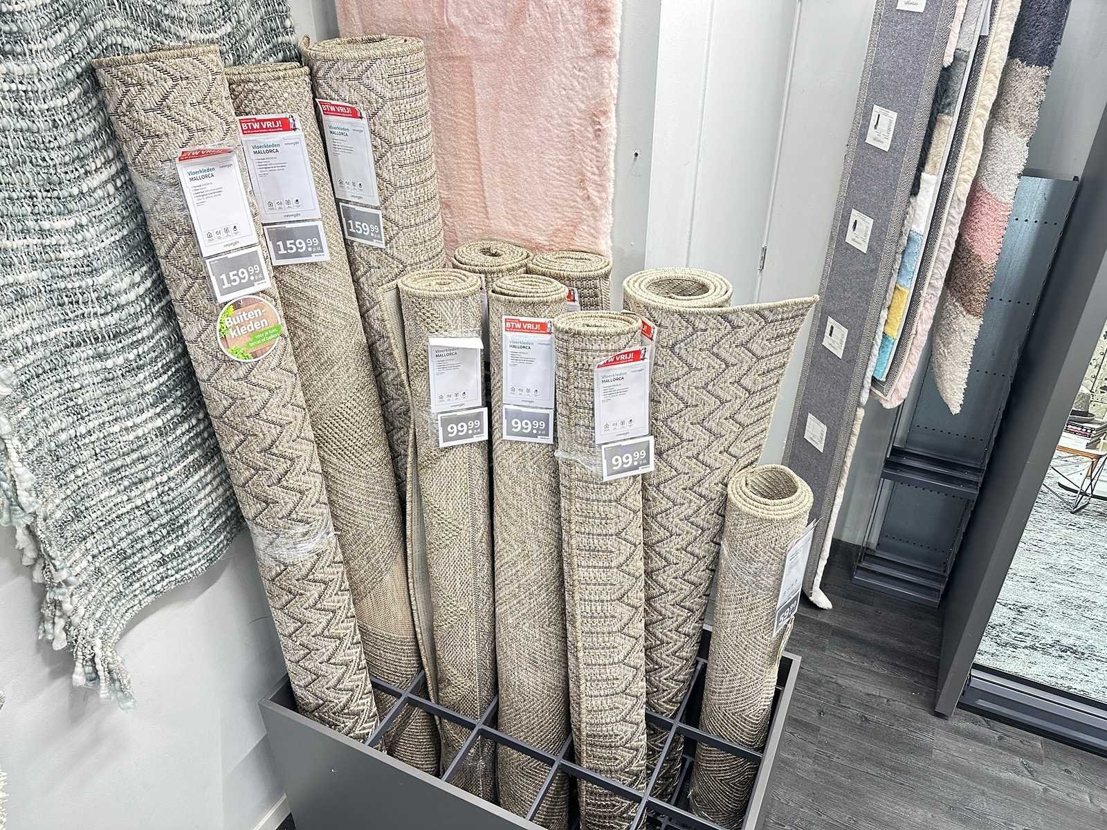 Diverse afmetingen van vloerkleden uit de lijn Mallorca. Exclusief rek.