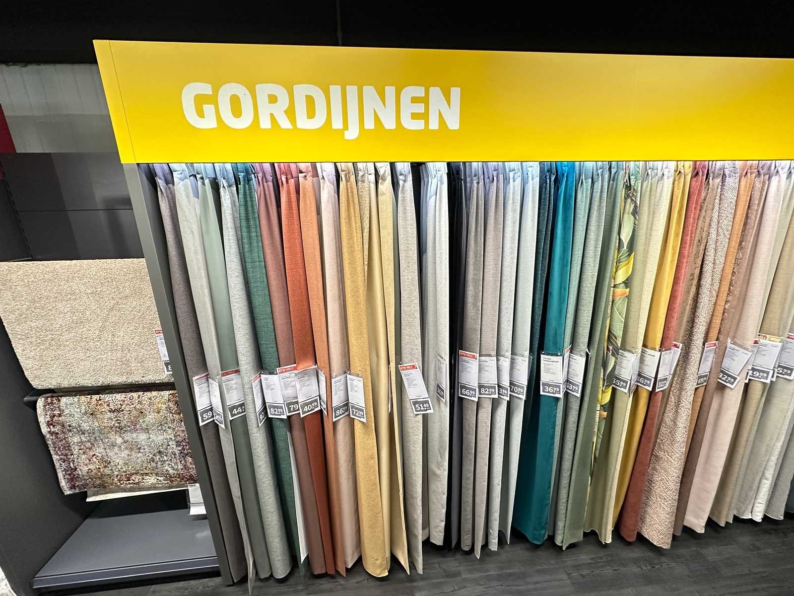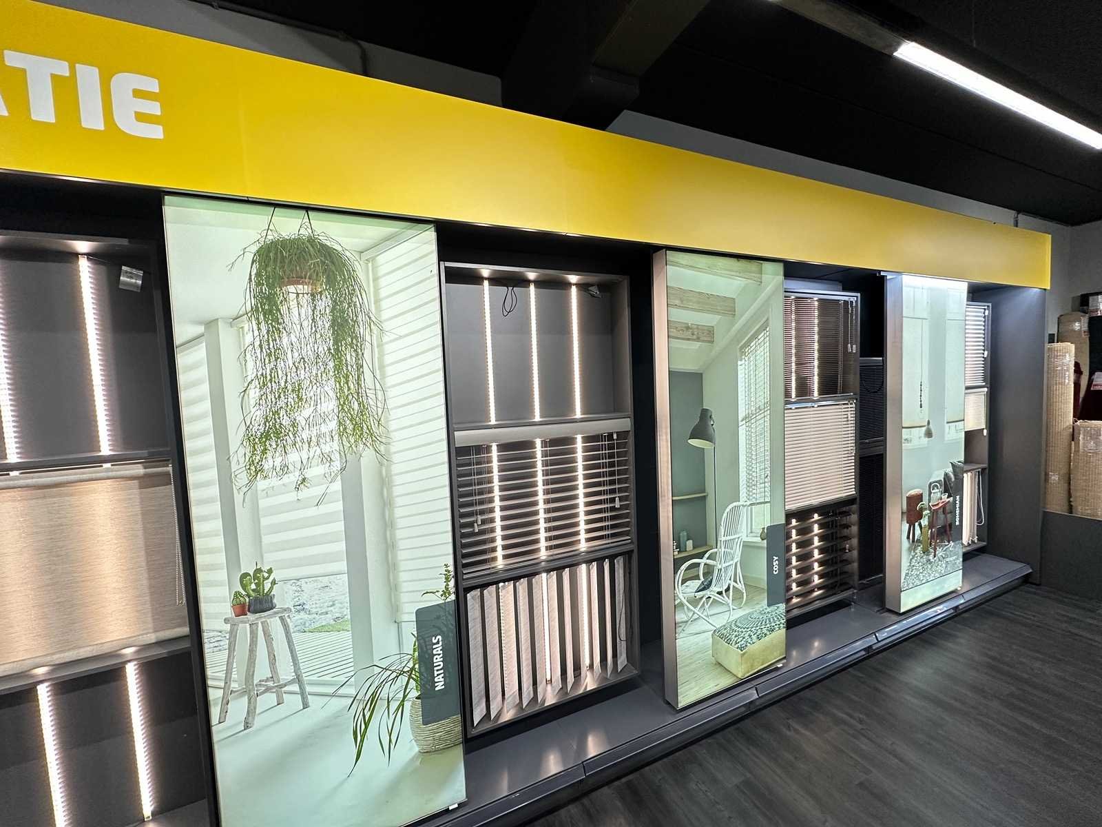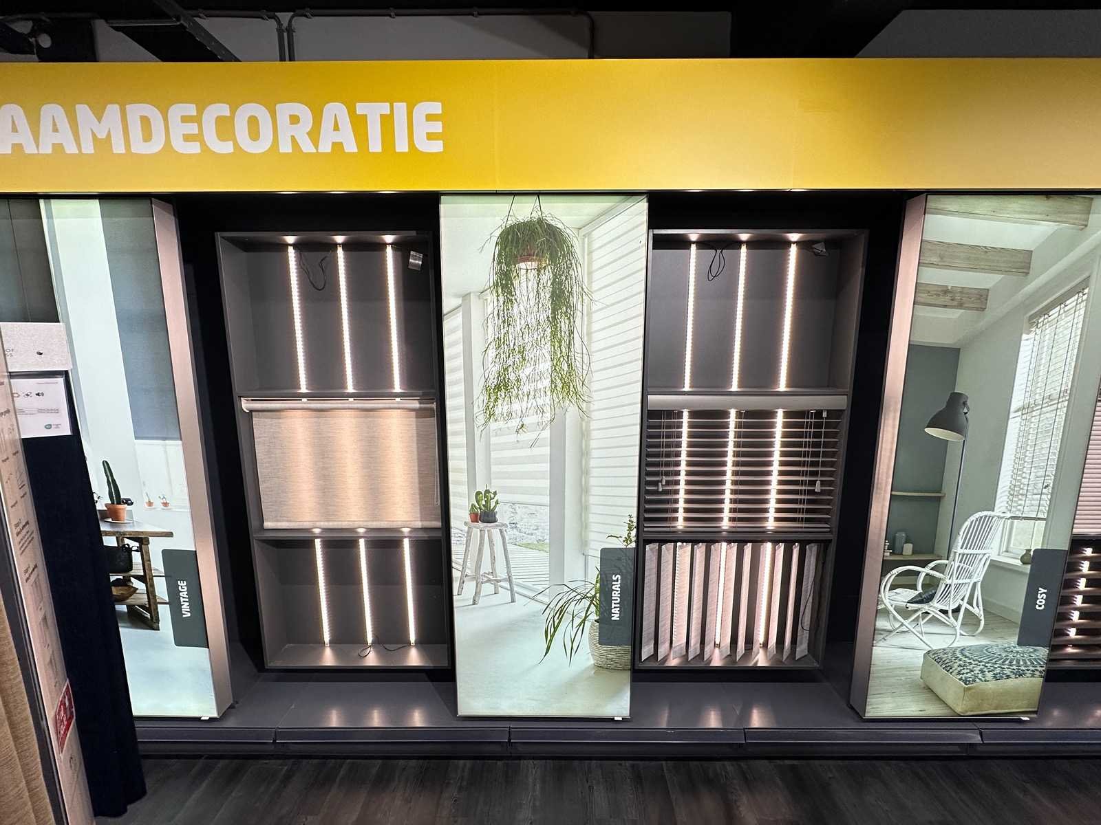 Presentatiewand 14 meter "gordijnen en raamdecoratie"