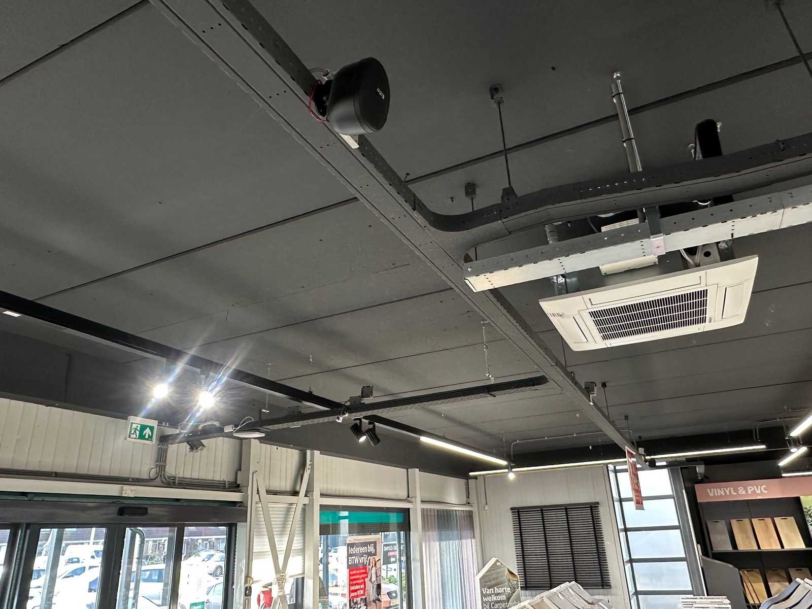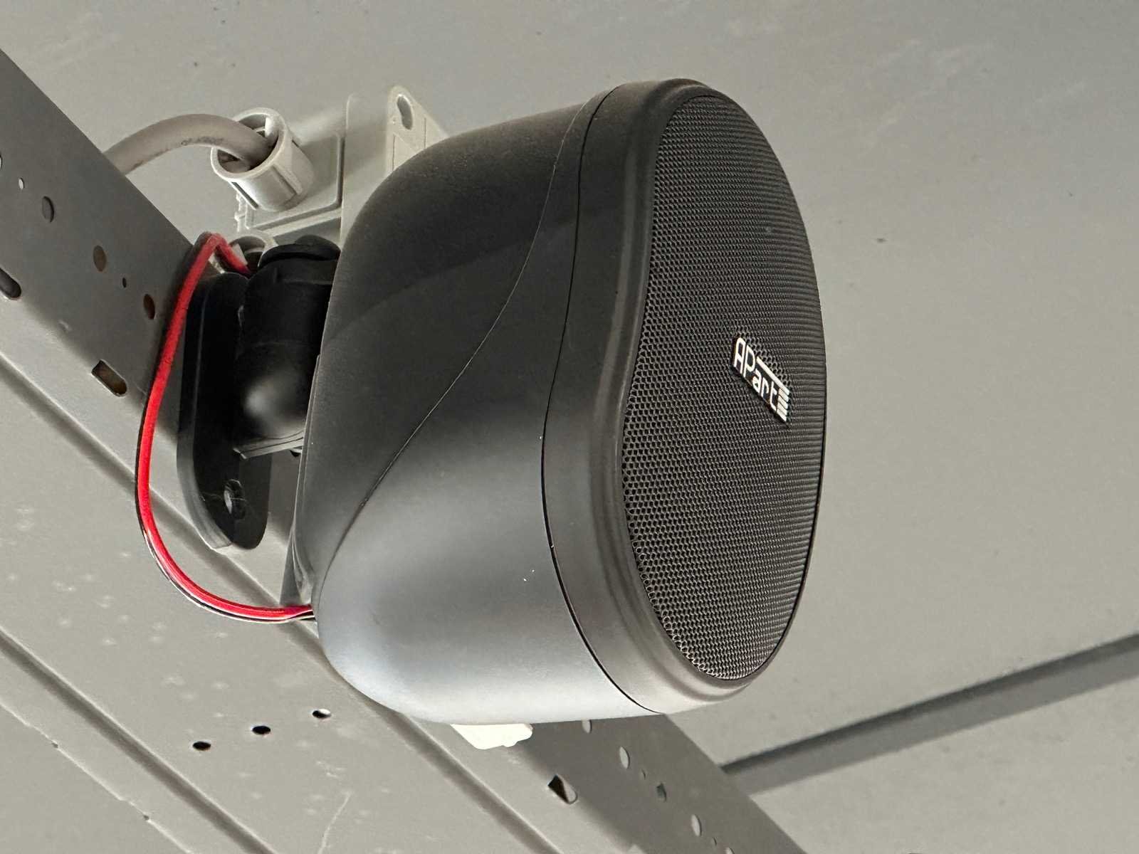 Compacte opbouw luidsprekers met bevestigingssteun. Merk: APart Type: OVO 3T Aansluiting: 100V