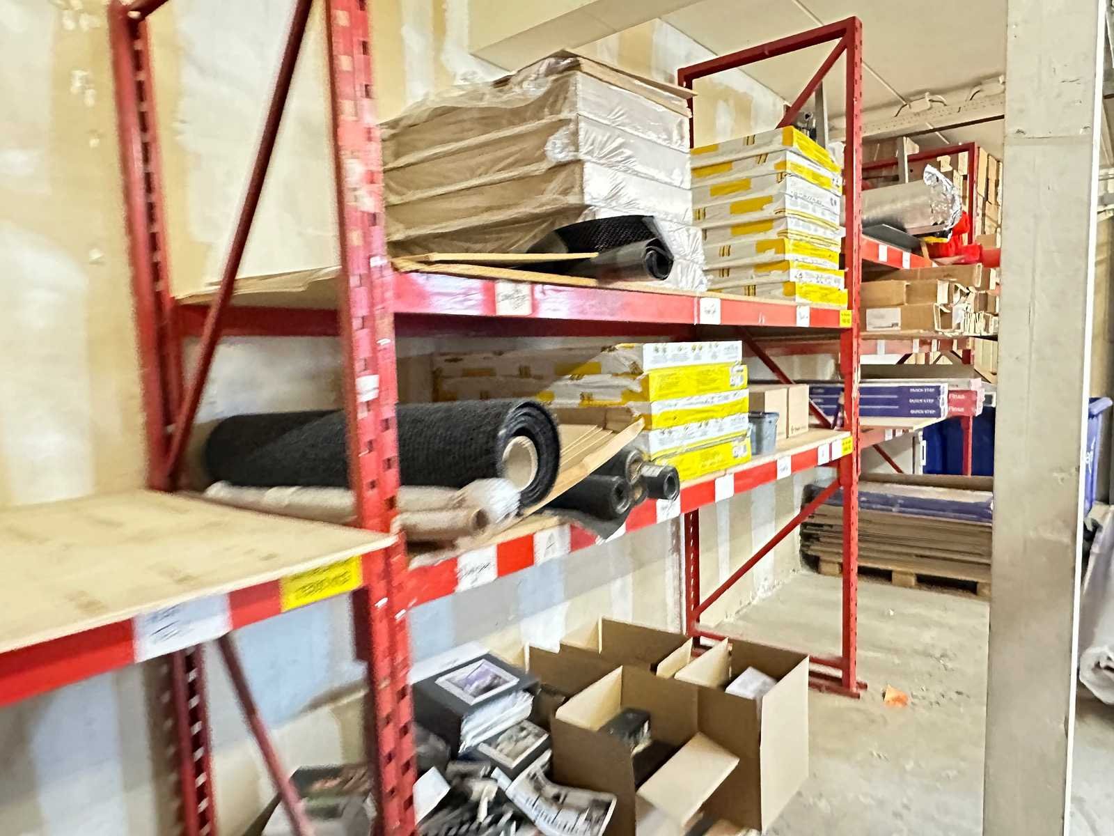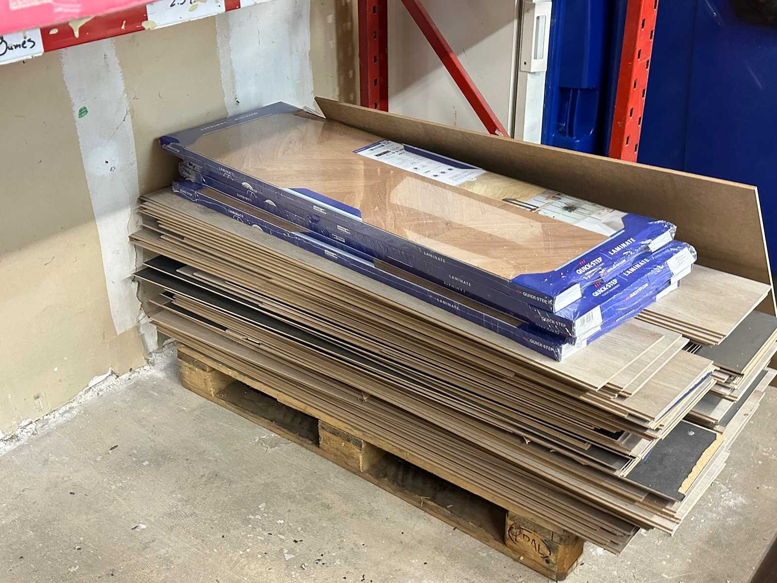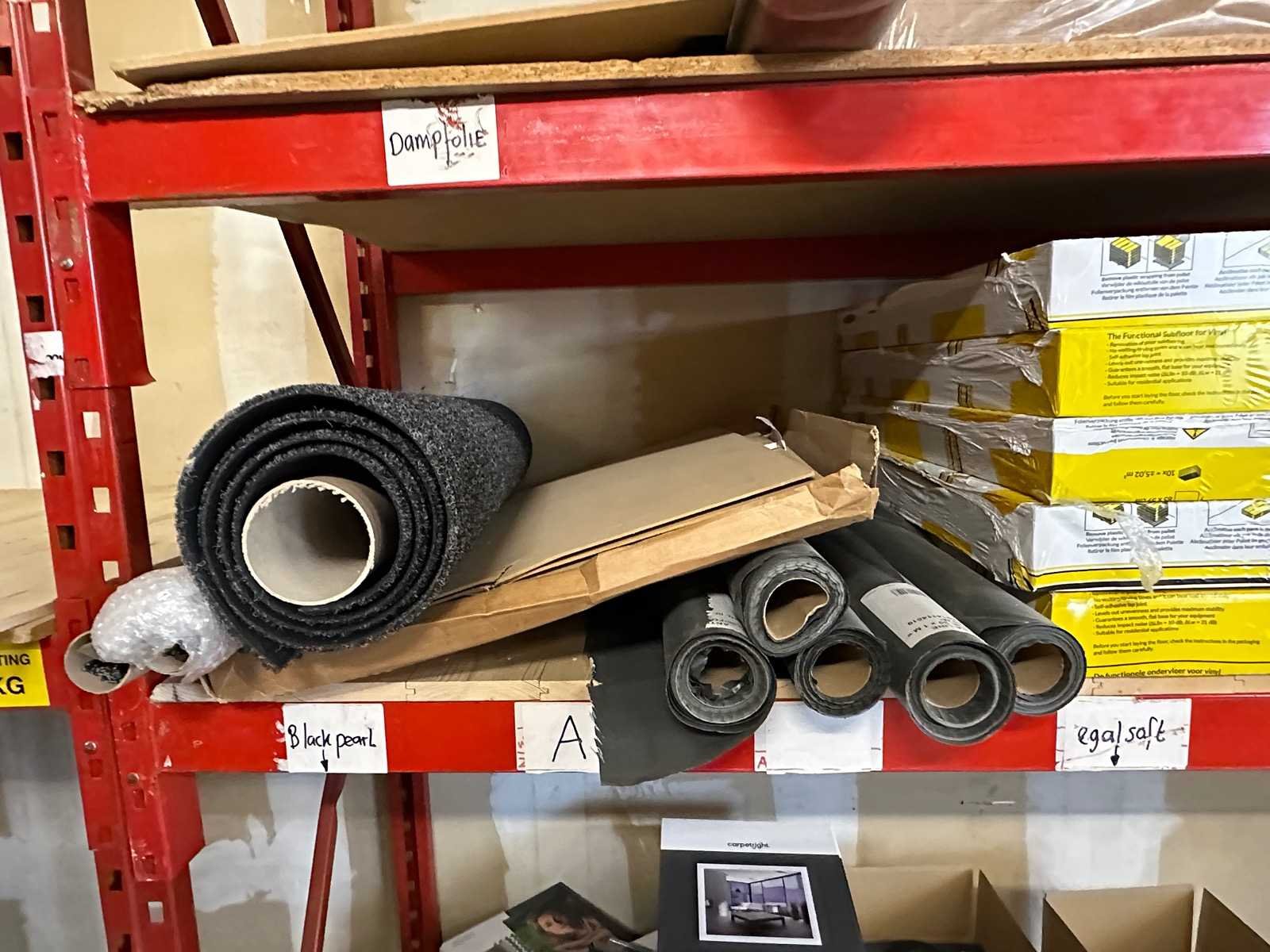 Exclusief stelling en stapelaar met oplader. De inhoud bestaat uit vloerdelen, tapijtrestanten, plinten en overige accessoires.