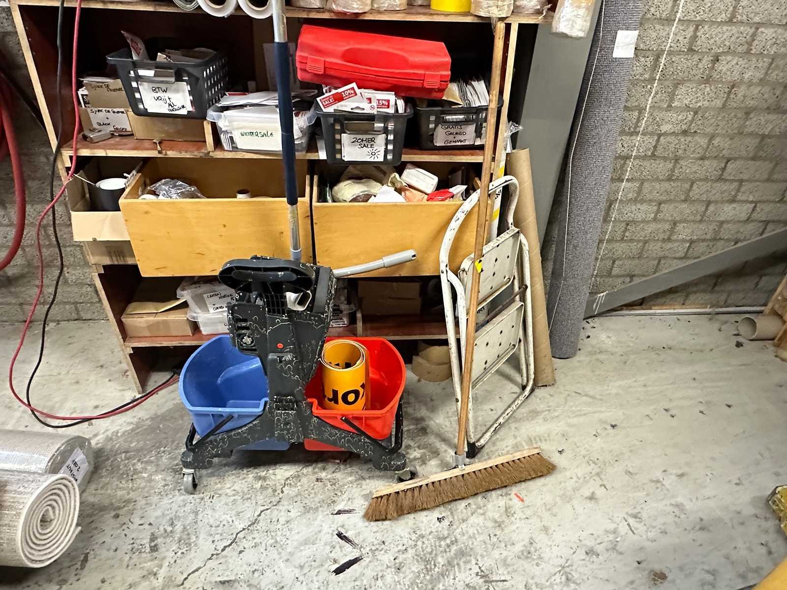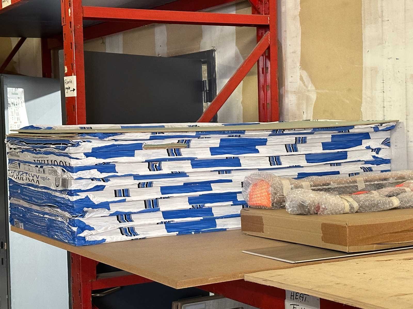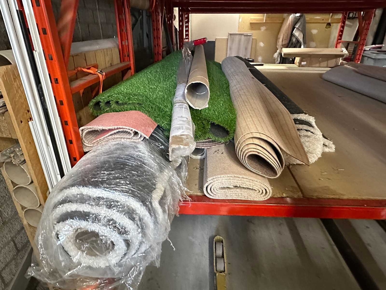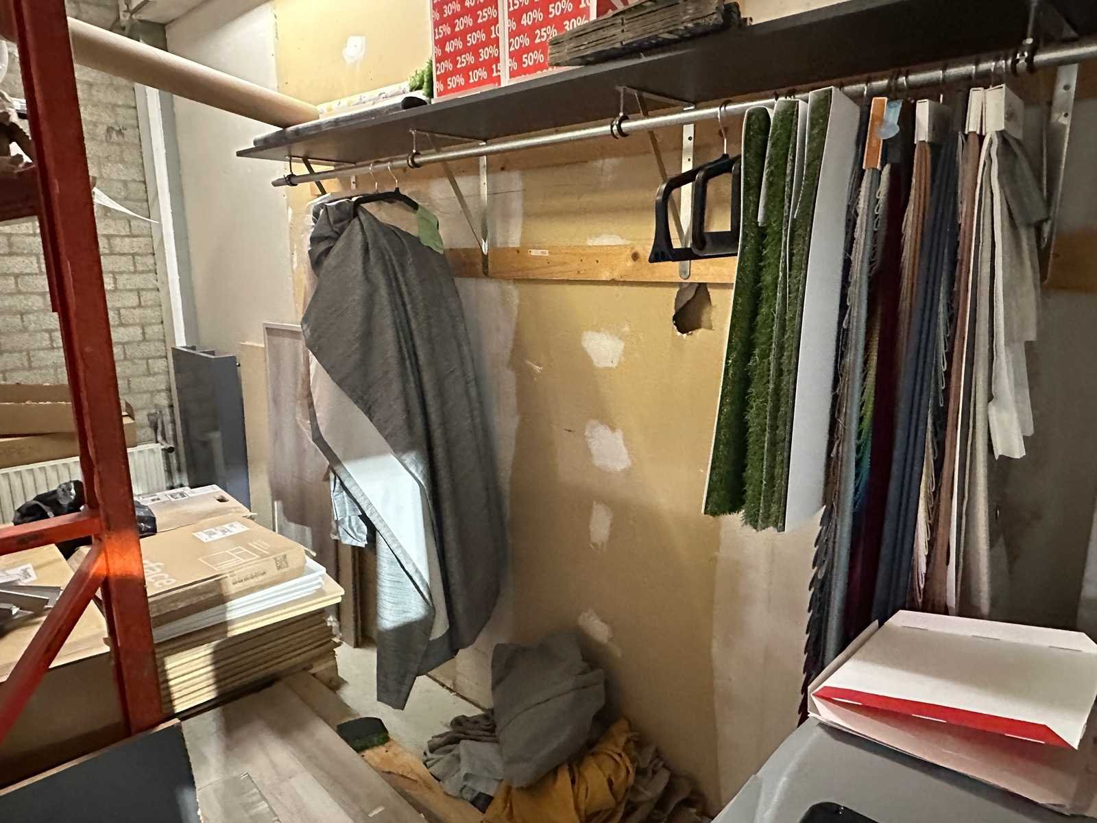 Exclusief stelling en stapelaar met oplader. De inhoud bestaat uit vloerdelen, tapijtrestanten, plinten en overige accessoires.