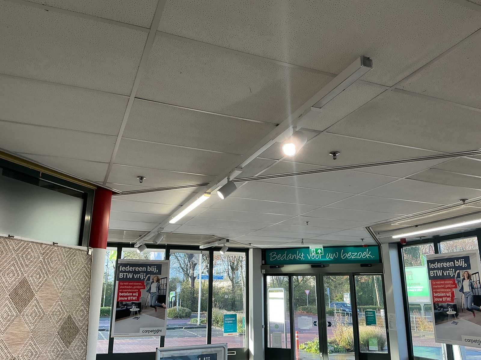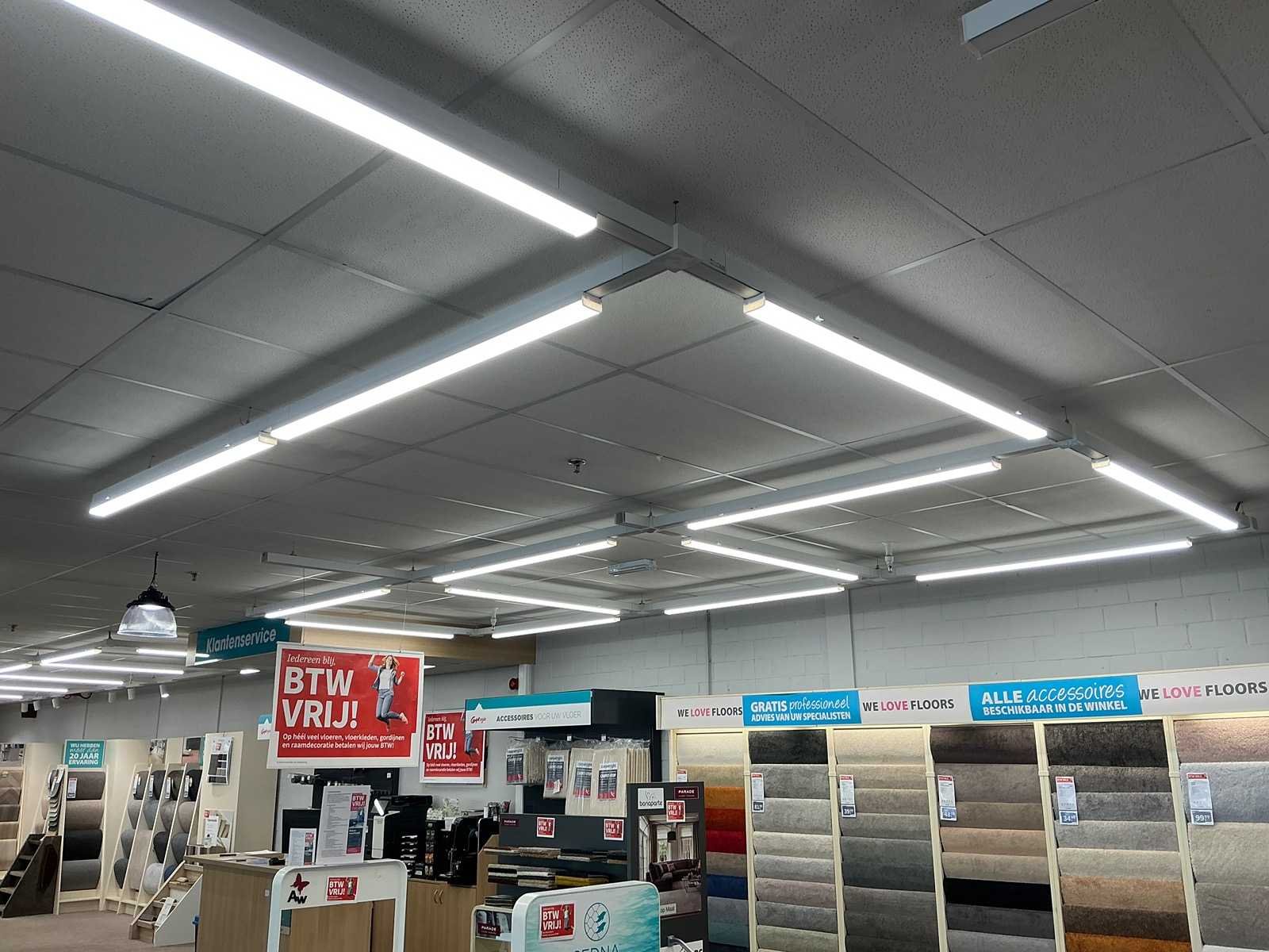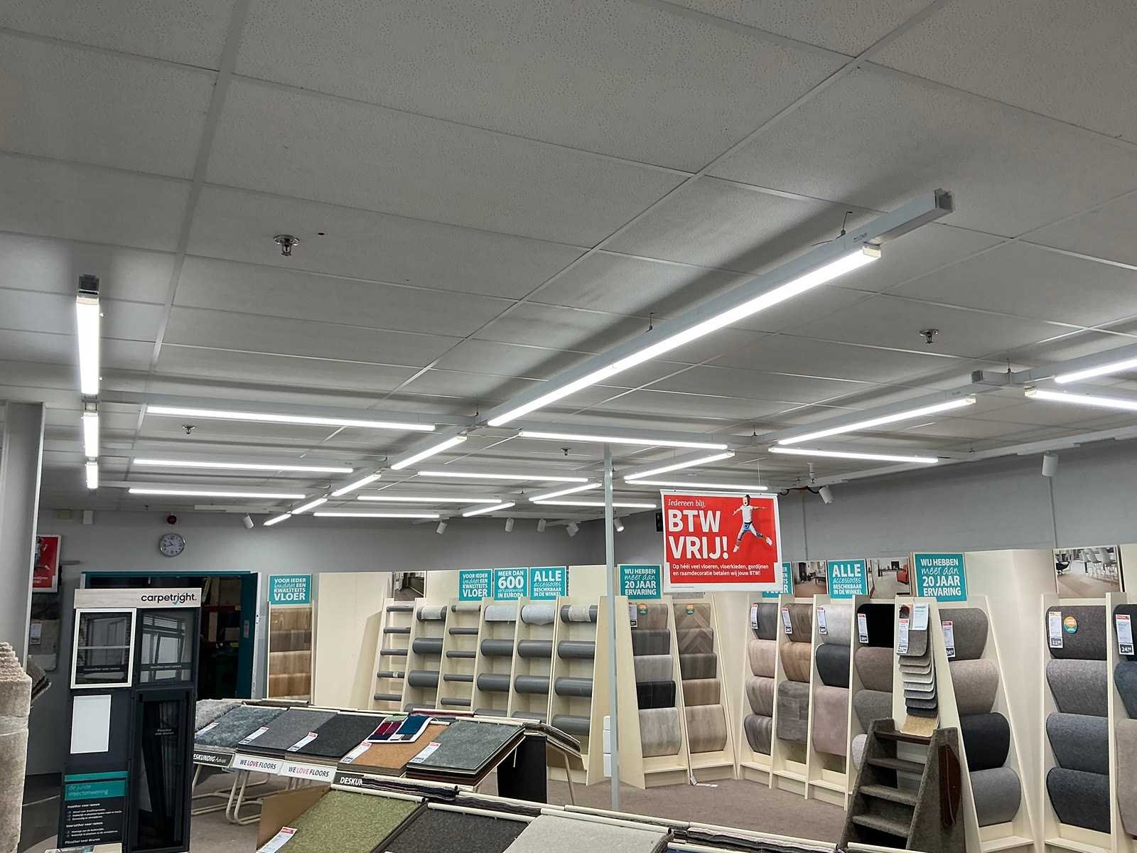 Winkelverlichting 100 meter rails met led balken en 35 spots