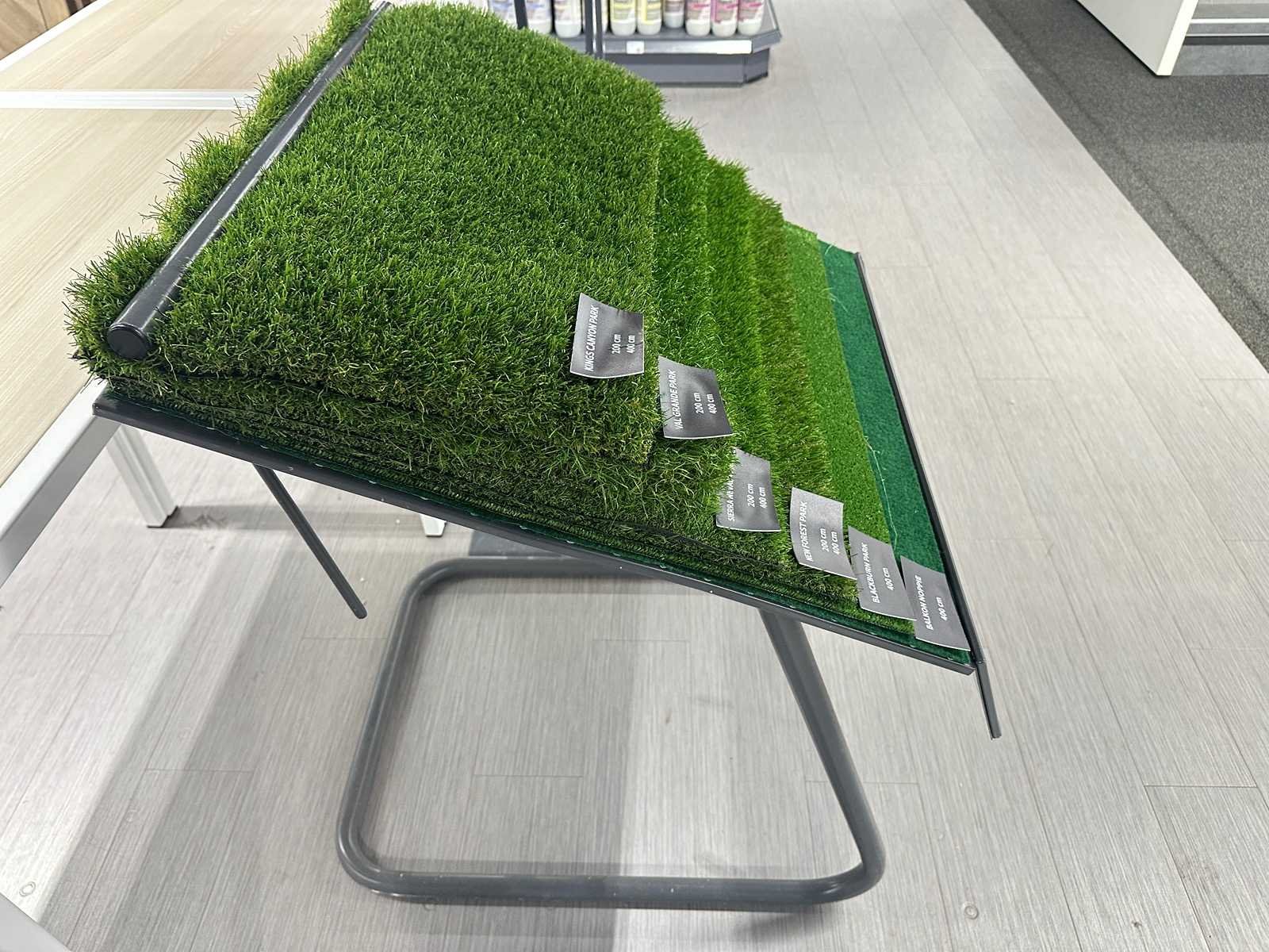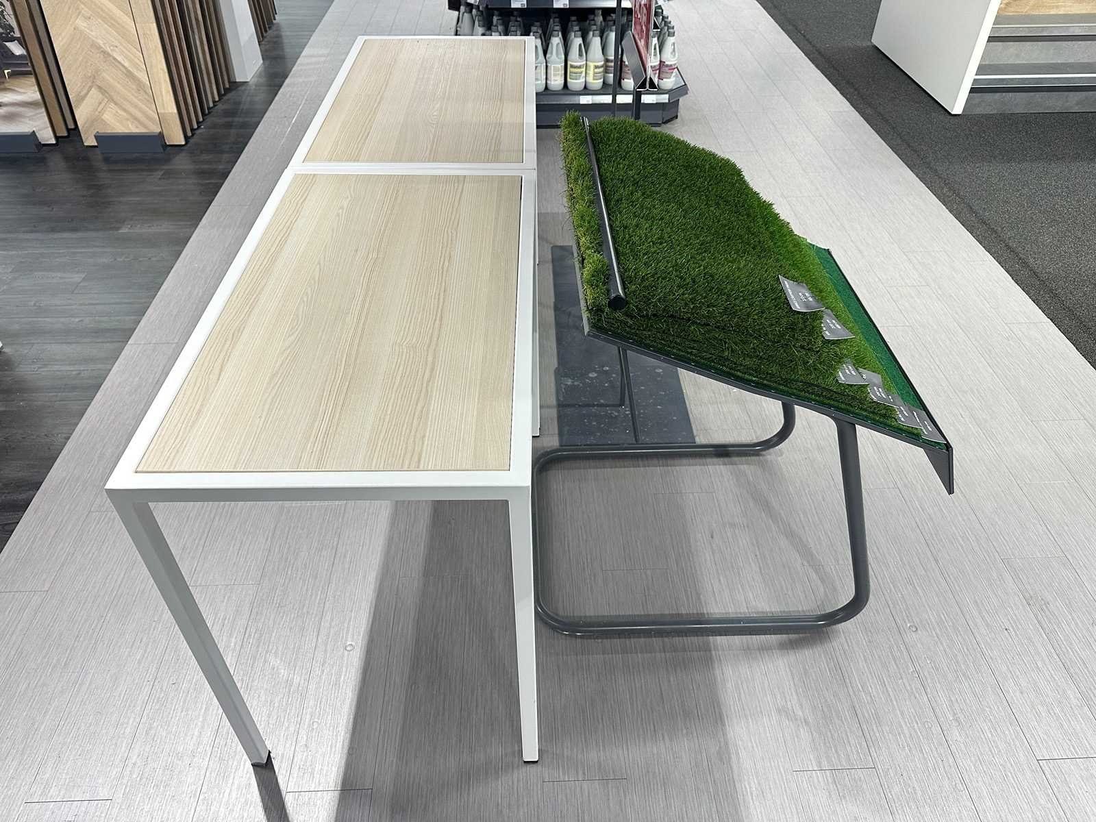 Deze set bestaat uit twee tafels, 3 prijskaarthouders en een display met kunstgras.