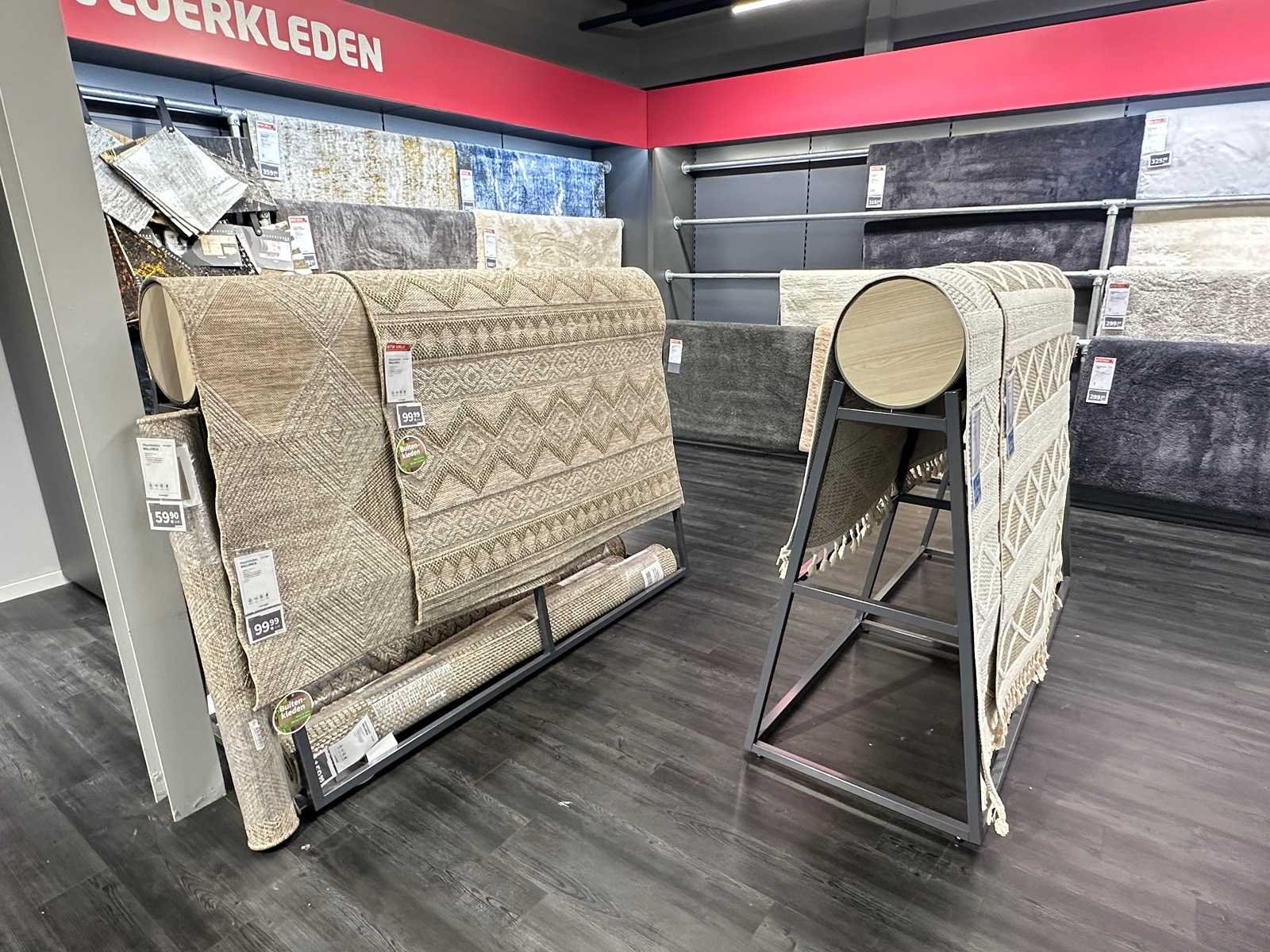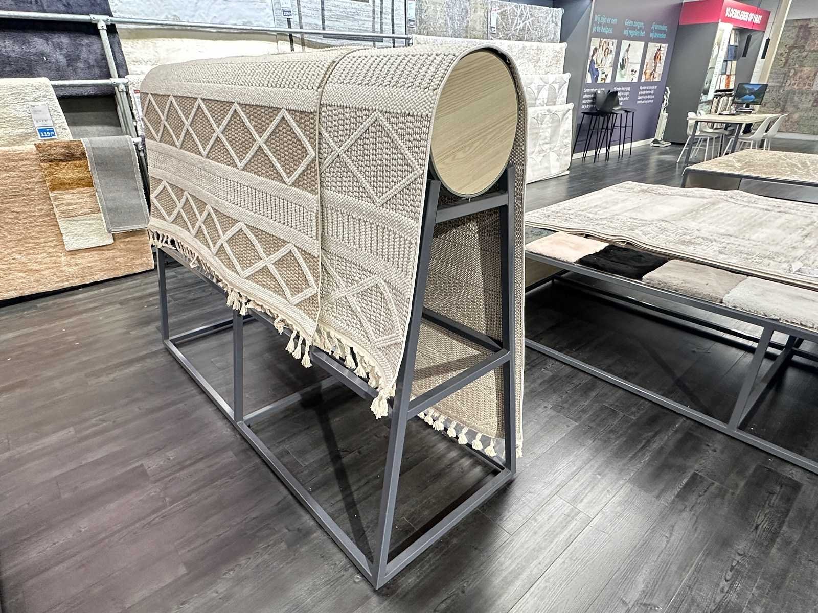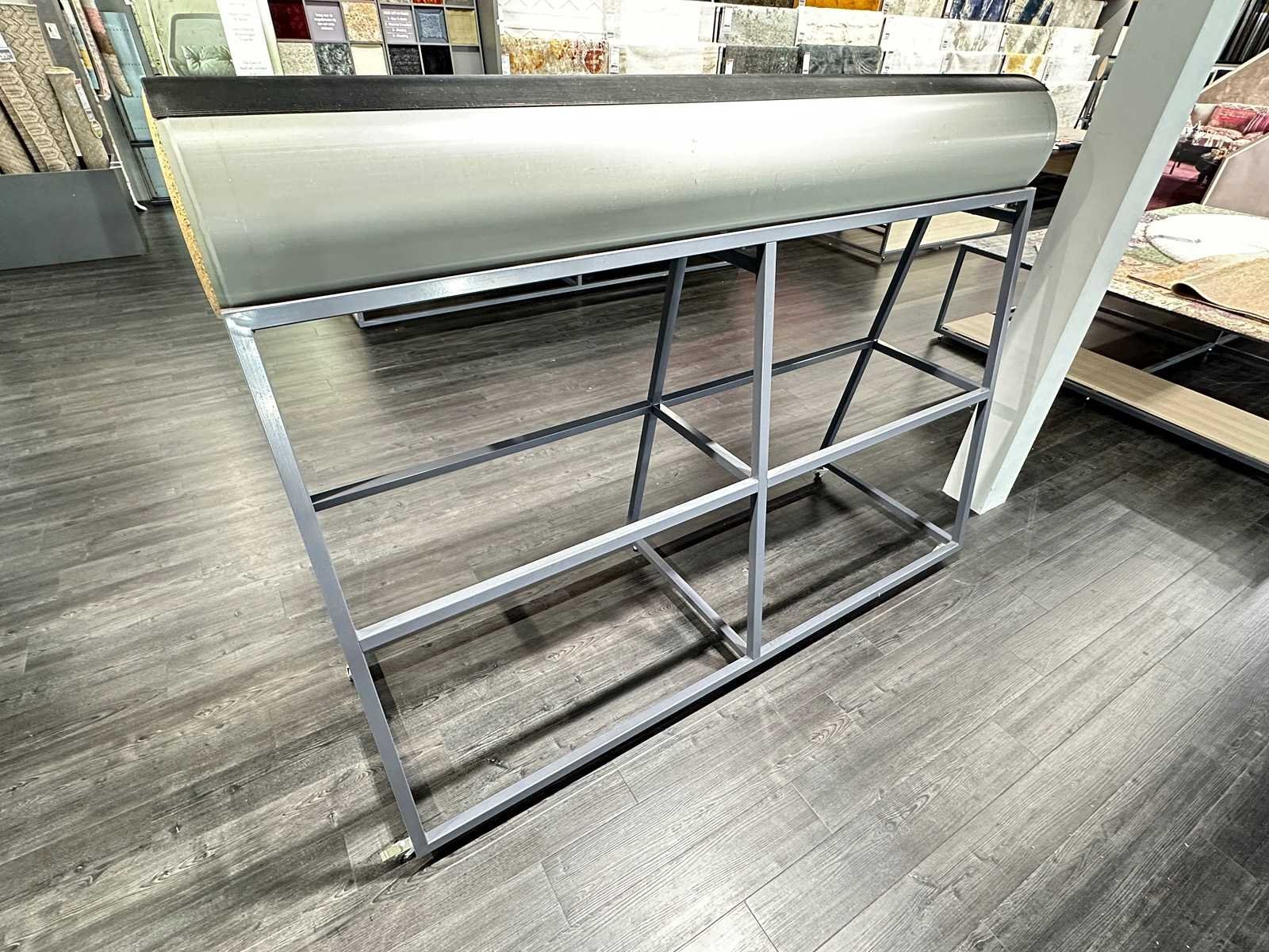 Stalen frame met houten rol. Voorzien van stelbare poten. Totale afmeting L: 2000mm Totale afmeting Breedte: 700mm Totale afmeting Hoogte: 1470mm