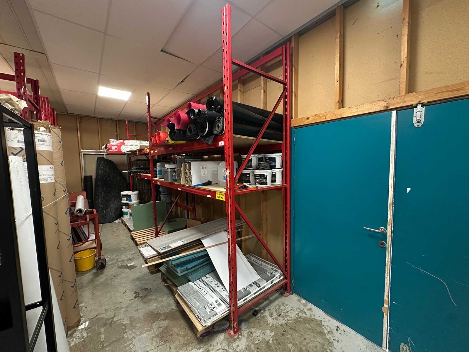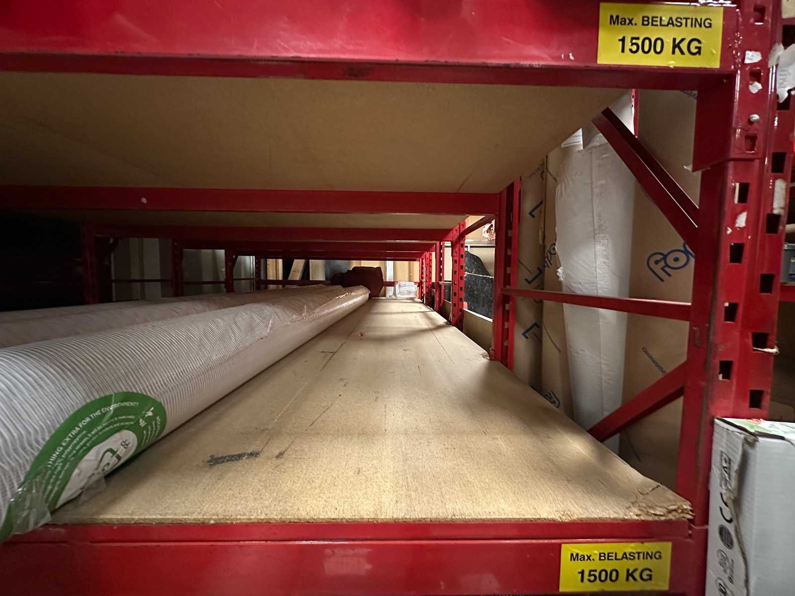 Exclusief inhoud. De stelling bestaat uit 9 staanders van 90x300 cm (BxH), 27 liggers van 240 cm. Diverse legborden. Demontabel: true