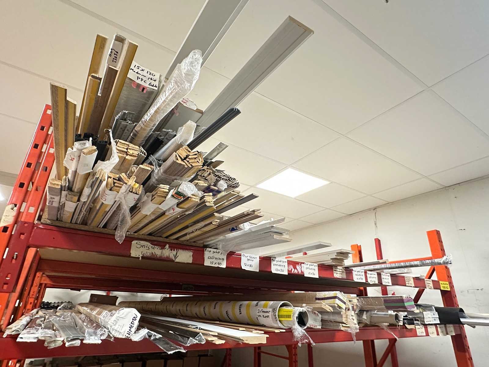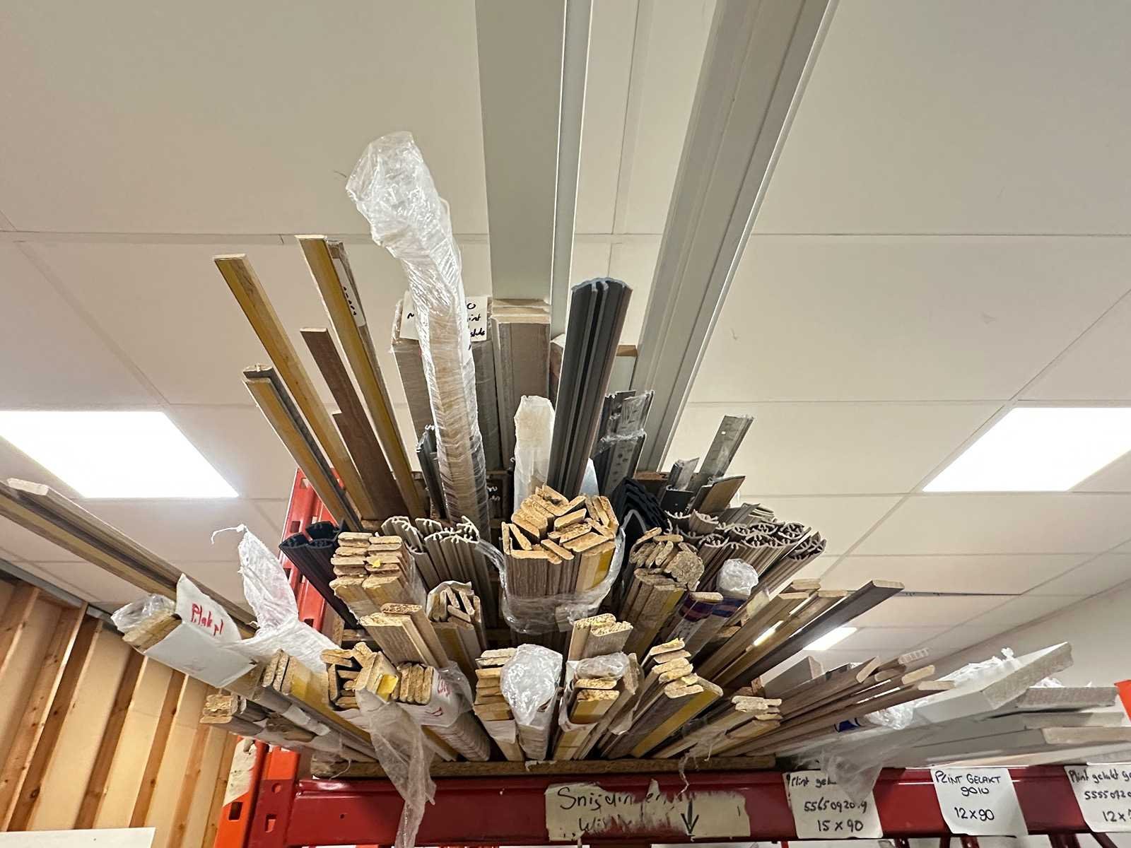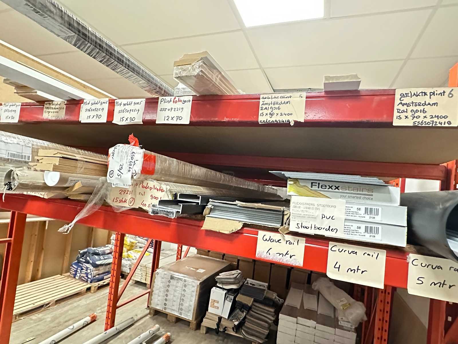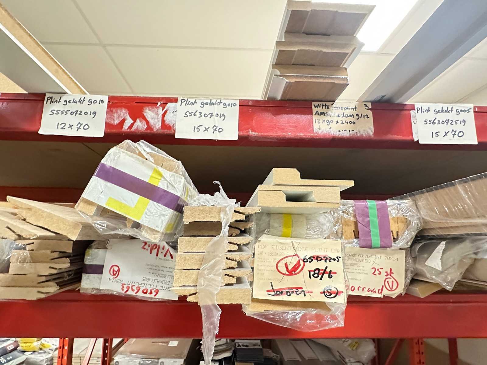 Deze partij bestaat uit diverse soorten plinten. In het magazijn.