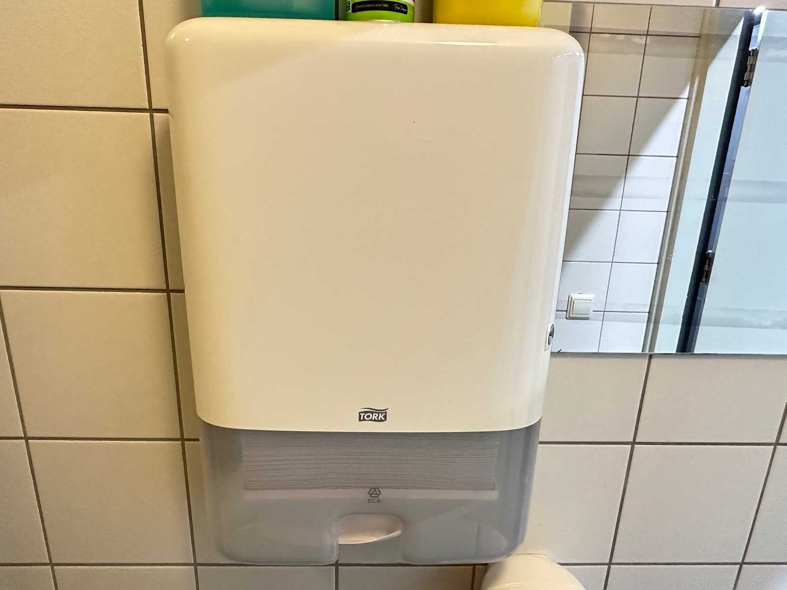 Deze set bestaat uit 2 handdoekdispensers, 2 papierdispensers en 2 zeepdispensers. Exclusief sleutel. Merk: Tork