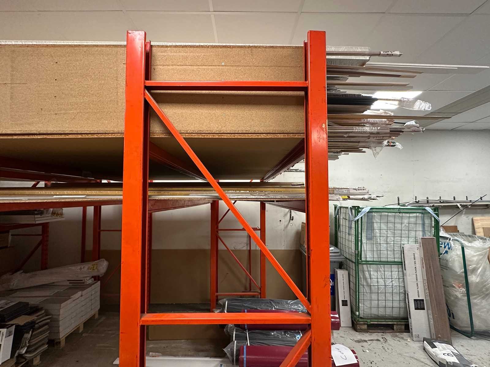 Exclusief inhoud. De stelling bestaat uit 6 staanders van 90x250 cm (BxH), 10 liggers van 290 cm. Diverse legborden. Demontabel: true