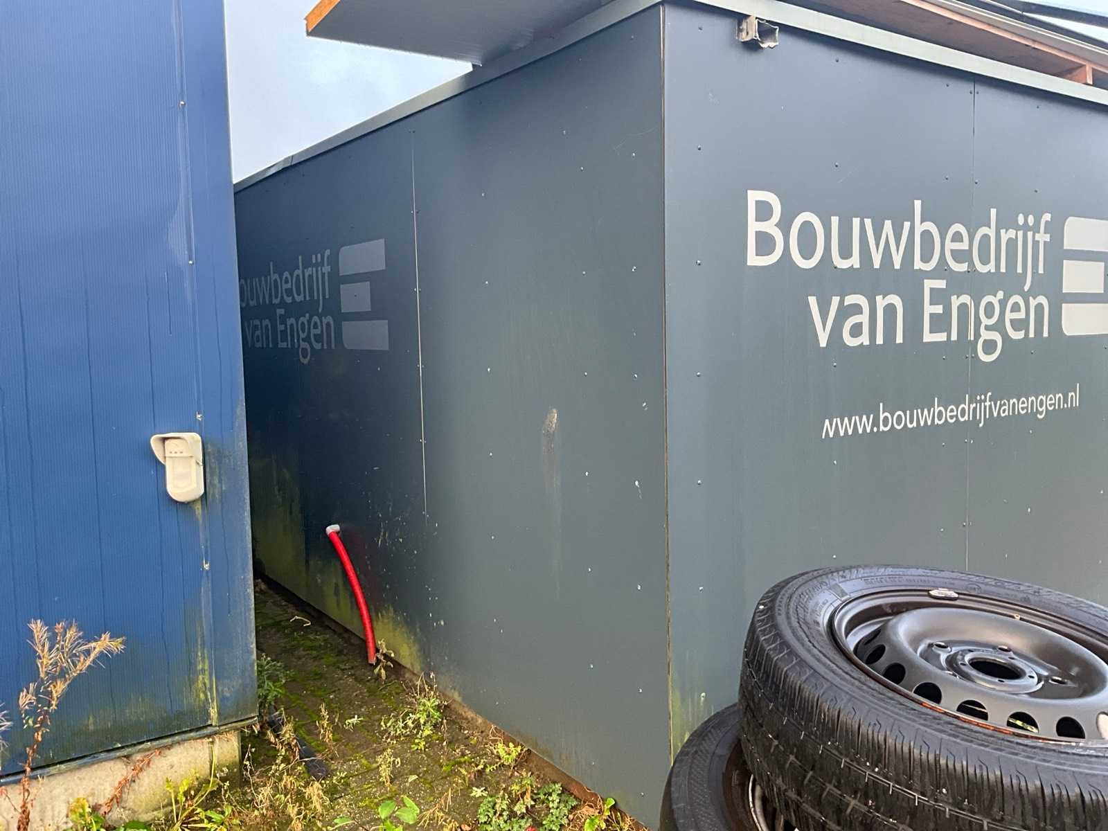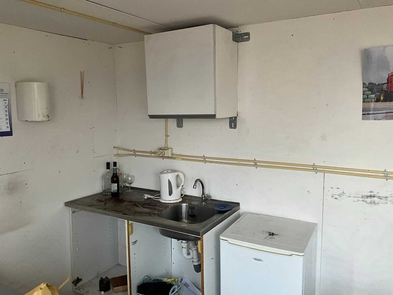 Schaftkeet. Met keukenblok, koelkast en extra opslagruimte met stelling; Type: Schaftunit / Opslagcontainer Aantal ramen: 1 Keukenblok: true Totale afmeting L: 6050mm Totale afmeting Breedte: 3000mm Totale afmeting Hoogte: 2550mm