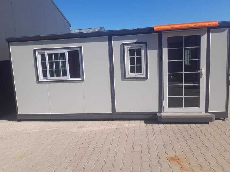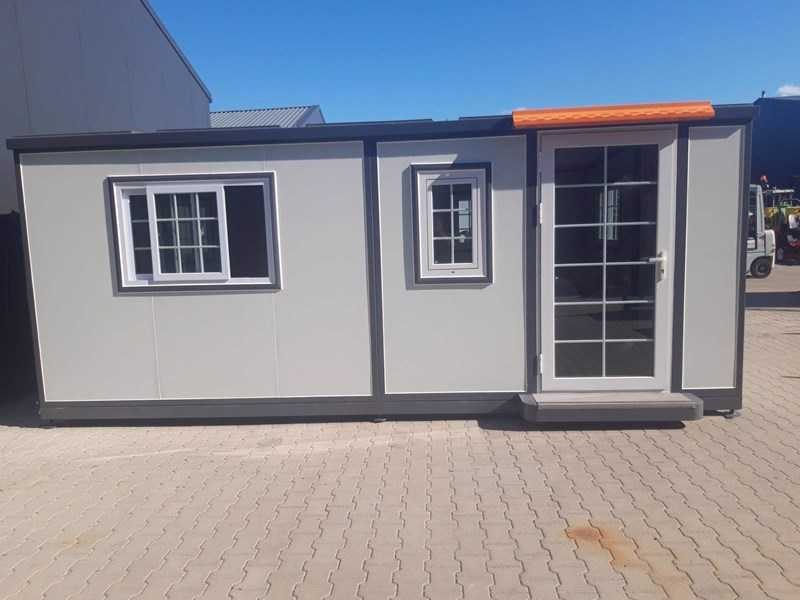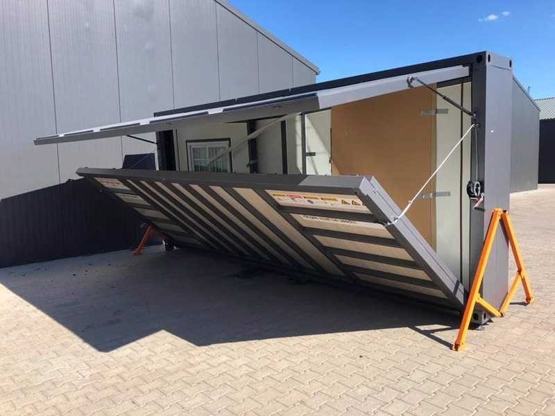 Geïsoleerde uitklapbare wanden en dak (15 ft x 20 ft) afsluitbaar met sleutel en knopcilinder; kunststof kozijnen met dubbele beglazing; afwateringsgoot; bordes; transportafmeting 5890x720x2550 mm (lxbxh); zie voor meer info downloads (type 0207); (deze kavel past in de 40 ft LYPU container); © ongebruikt. Merk: Easy-Going Model: 0207 Kleur: wit / antraciet Gewicht: 2650 Lengte: 5890 Breedte: 4820 Hoogte: 2550 Materiaal: geïsoleerde panelen / metaal