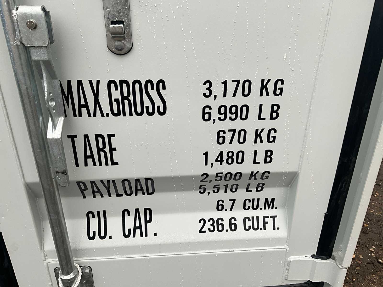 Zeecontainer / opslagcontainer; v.v. lepelgaten; 2x sleutel; kleur RAL 7035; zijdeur; raam; ongebruikt; Merk: 2024 - GMPU Type: 7ft Opslagcontainer: true Totale afmeting L: 2140mm Totale afmeting Breedte: 1840mm Totale afmeting Hoogte: 1980mm