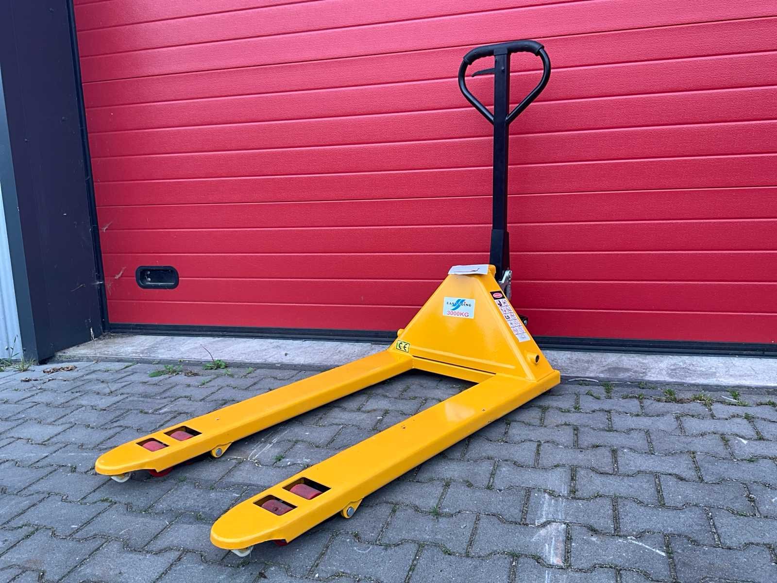 Easy-Going Palletwagen; hand en voet bediening; rubberen wielen; dubbele voorwielen; ongebruikt; Maximaal draagvermogen: 3000 (kg); Binnenbreedte vork: 365 (mm) Buitenbreedte vork: 685 (mm) Vorklengte: 1200 (mm) Merk: Easy-Going Type: 3000 kg Bouwjaar: 2025 Hefvermogen: 3000kg Hefhoogte: 200mm Lepellengte: 1200mm Totale afmeting L: 1600mm Totale afmeting Breedte: 680mm Totale afmeting Hoogte: 1250mm
