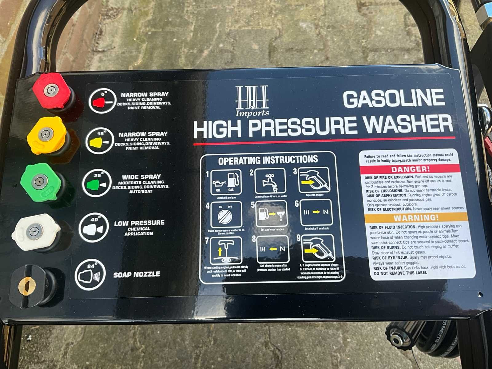 Hogedrukreiniger met een Benzine motor; nominale druk 2200psi; toegestane druk 2500psi; nominale stroom 8,5lpm; maximale stroomsnelheid 9lpm; vermogen 6,5 pk; nominale snelheid 3400 tpm; Merk: HH Type: 170B Bouwjaar: 2025 Totale afmeting L: 1000mm Totale afmeting Breedte: 500mm Totale afmeting Hoogte: 750mm