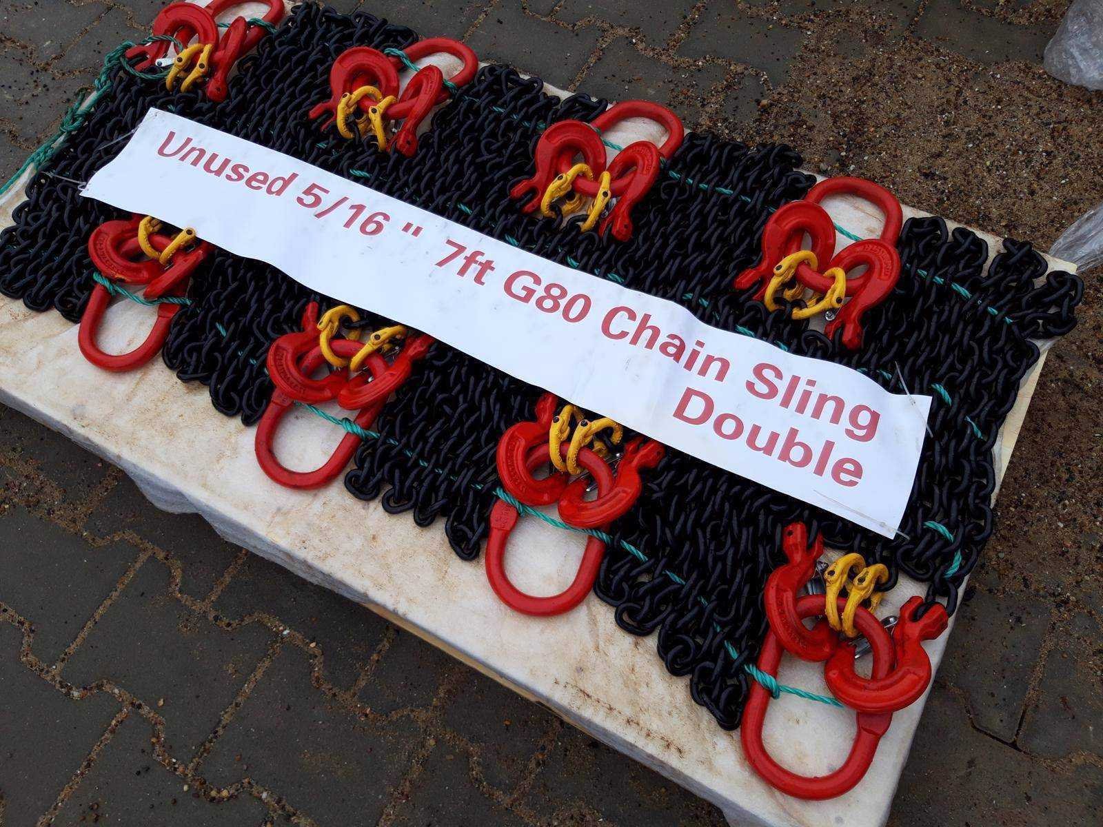 Kettinglengte 7 ft (2,13 mtr); kettingdiameter 5/16 inch; werkcapaciteit 2x2 ton; grade 80; veiligheidshaak; max. bedrijfslast: 2000 kg; © ongebruikt. Merk: Easy going Type: 2-sprong hijsketting Bouwjaar: 2025 Hijsvermogen: 2000kg