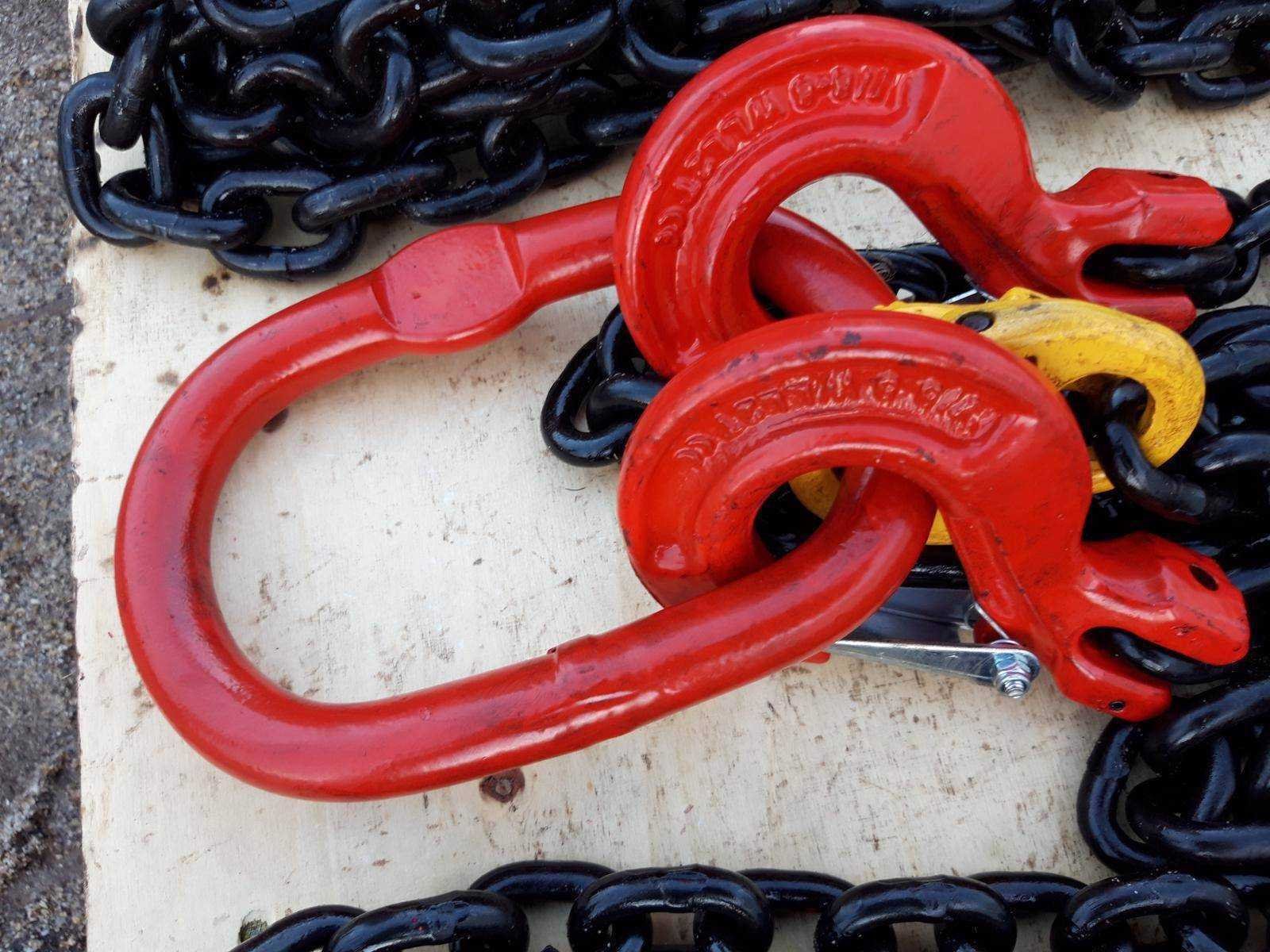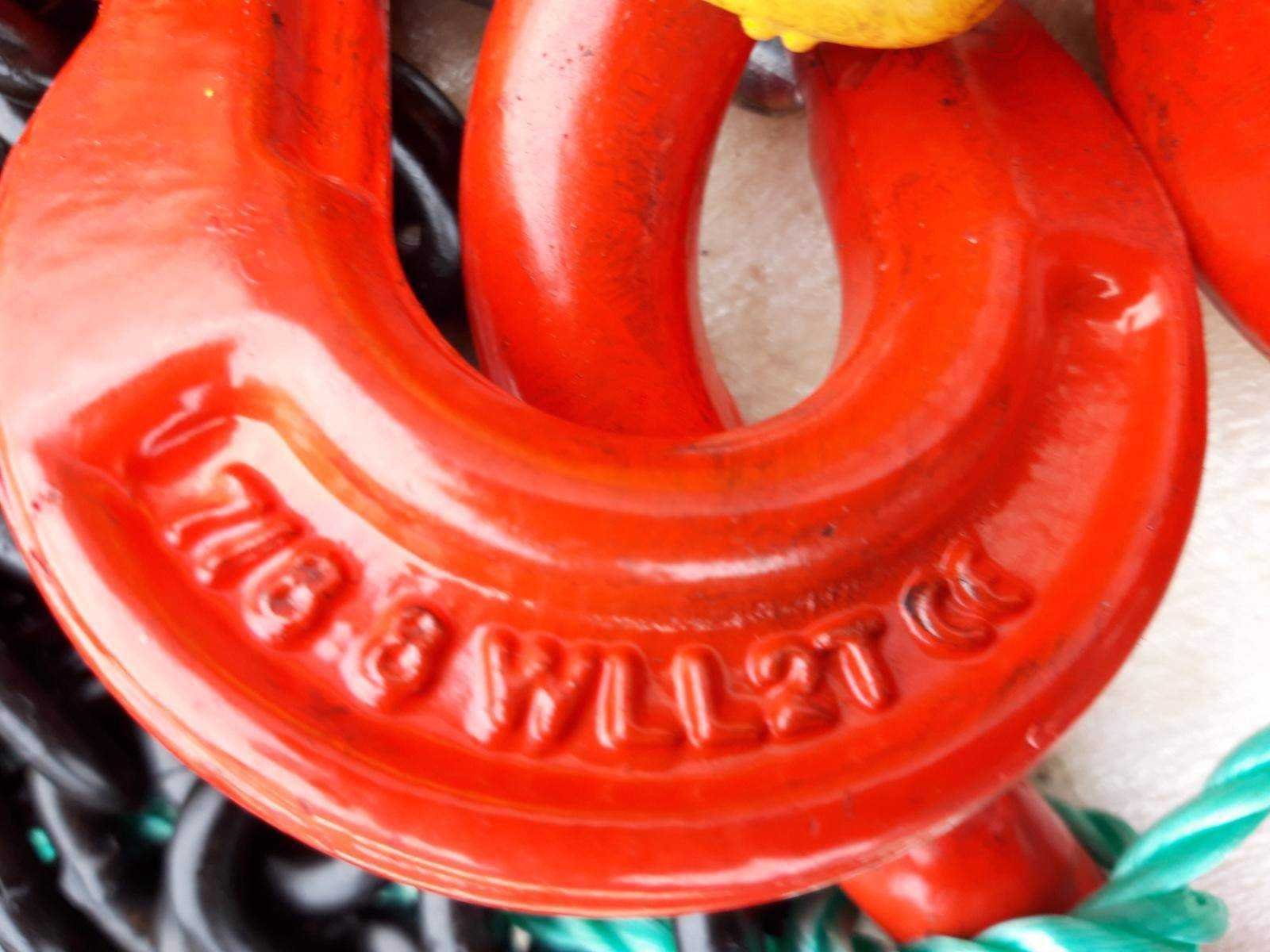 Kettinglengte 7 ft (2,13 mtr); kettingdiameter 5/16 inch; werkcapaciteit 2x2 ton; grade 80; veiligheidshaak; max. bedrijfslast: 2000 kg; © ongebruikt. Merk: Easy going Type: 2-sprong hijsketting Bouwjaar: 2025 Hijsvermogen: 2000kg