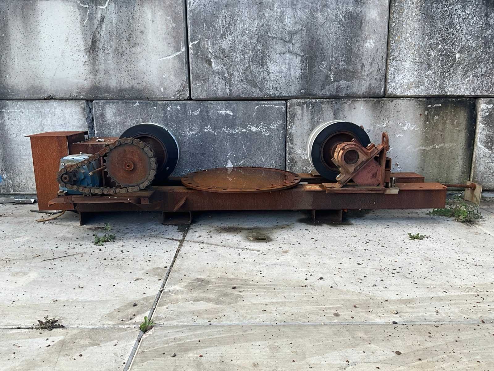 Werking onbekend. Heeft wat aandacht nodig met de elektra aansluiting. Dit kavel bestaat uit 2 onderdelen, afmeting van onderdeel 1 met motor: LxBxH 3350mm x 1000mm x 750mm; afmeting omderdeel 2 zonder motor: LxBxH 2400mm x 600mm x 750mm Type: Lasmanipulator