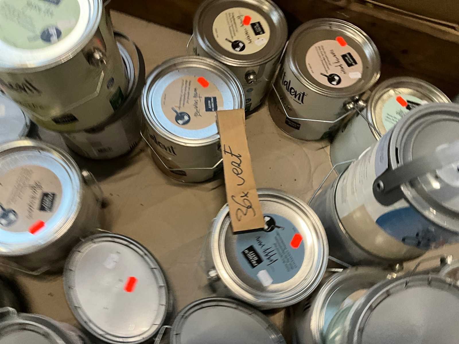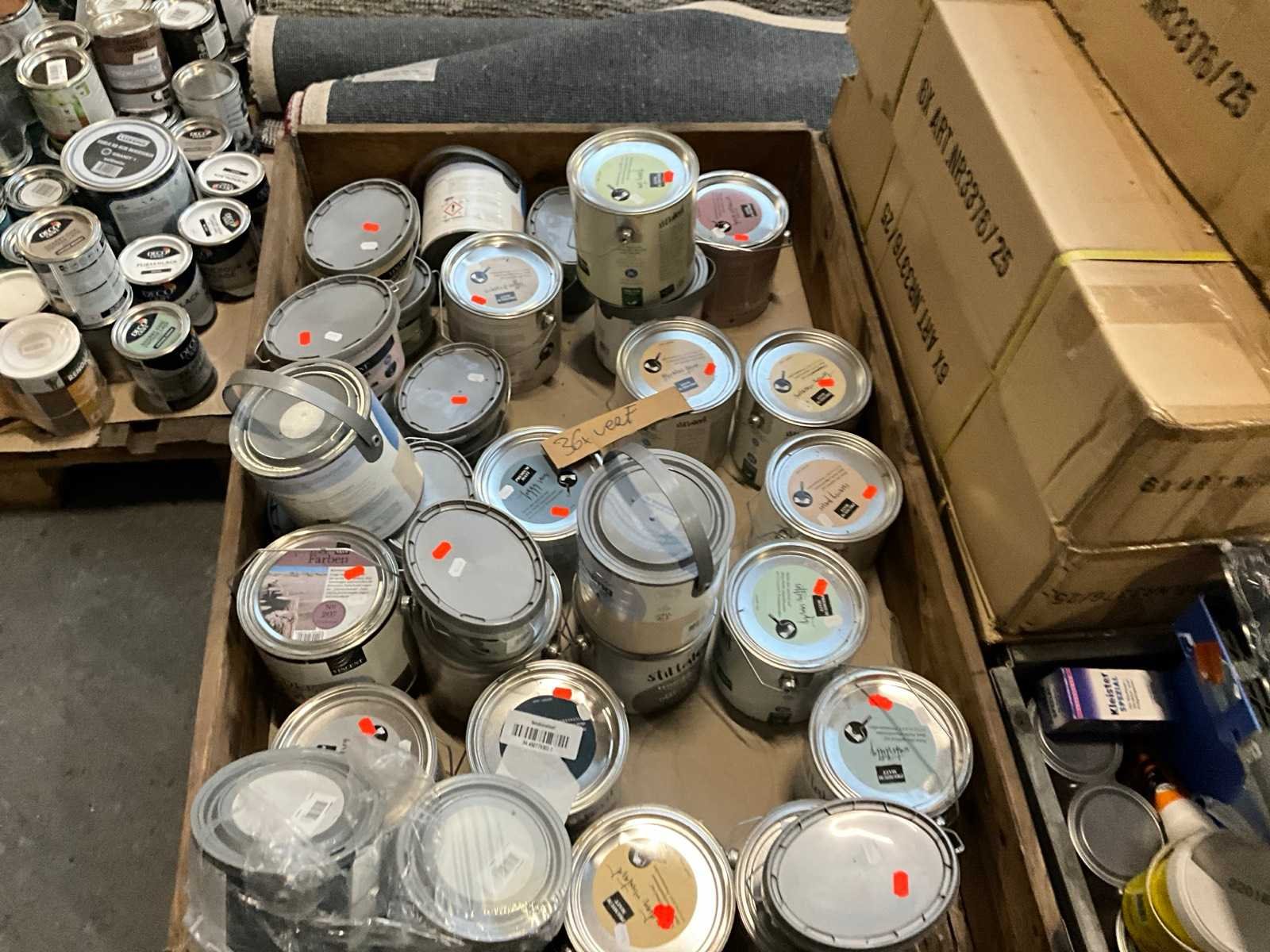 1 pallet , diverse kleuren verf; Pallet niet bij kavel inbegrepen; Aantal niet gecontroleerd ;