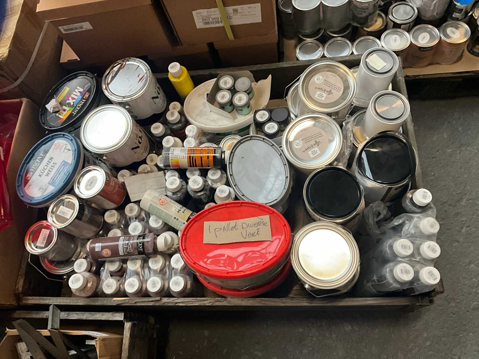 1 pallet , diverse kleuren verf; Pallet niet bij kavel inbegrepen; Aantal niet gecontroleerd ;