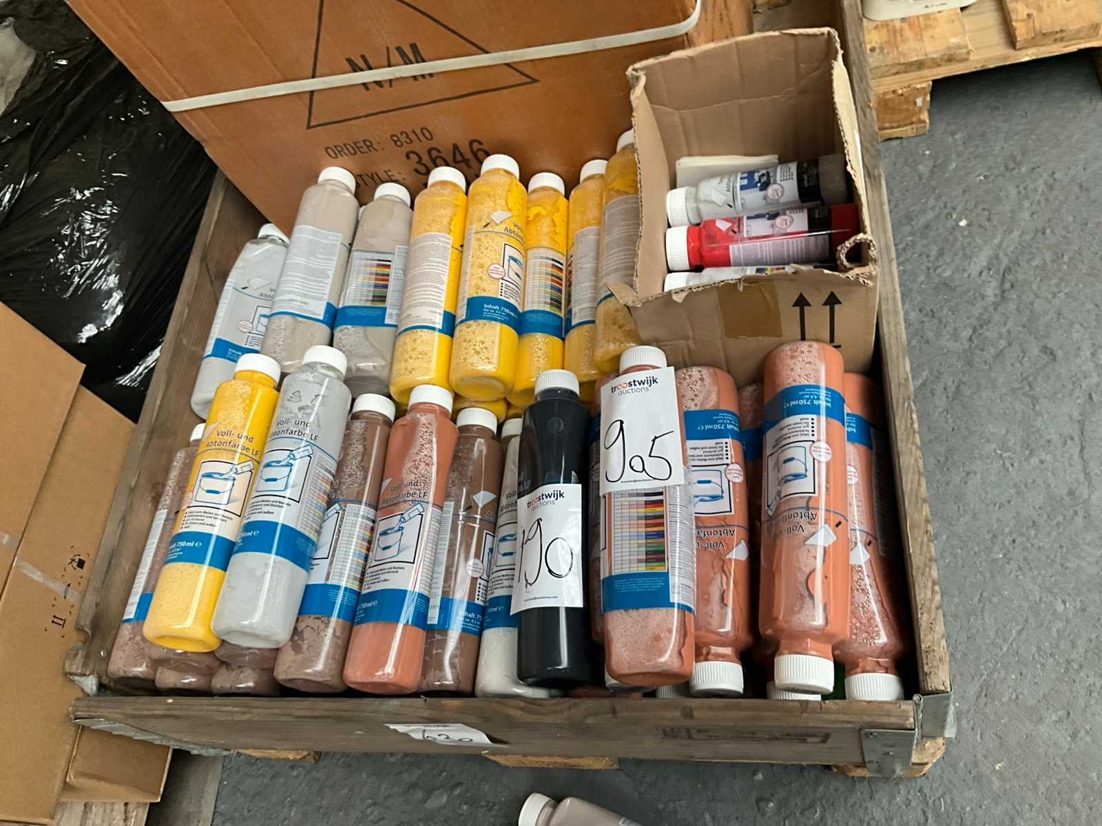 1 pallet , diverse kleuren verf; Pallet niet bij kavel inbegrepen; Aantal niet gecontroleerd ;