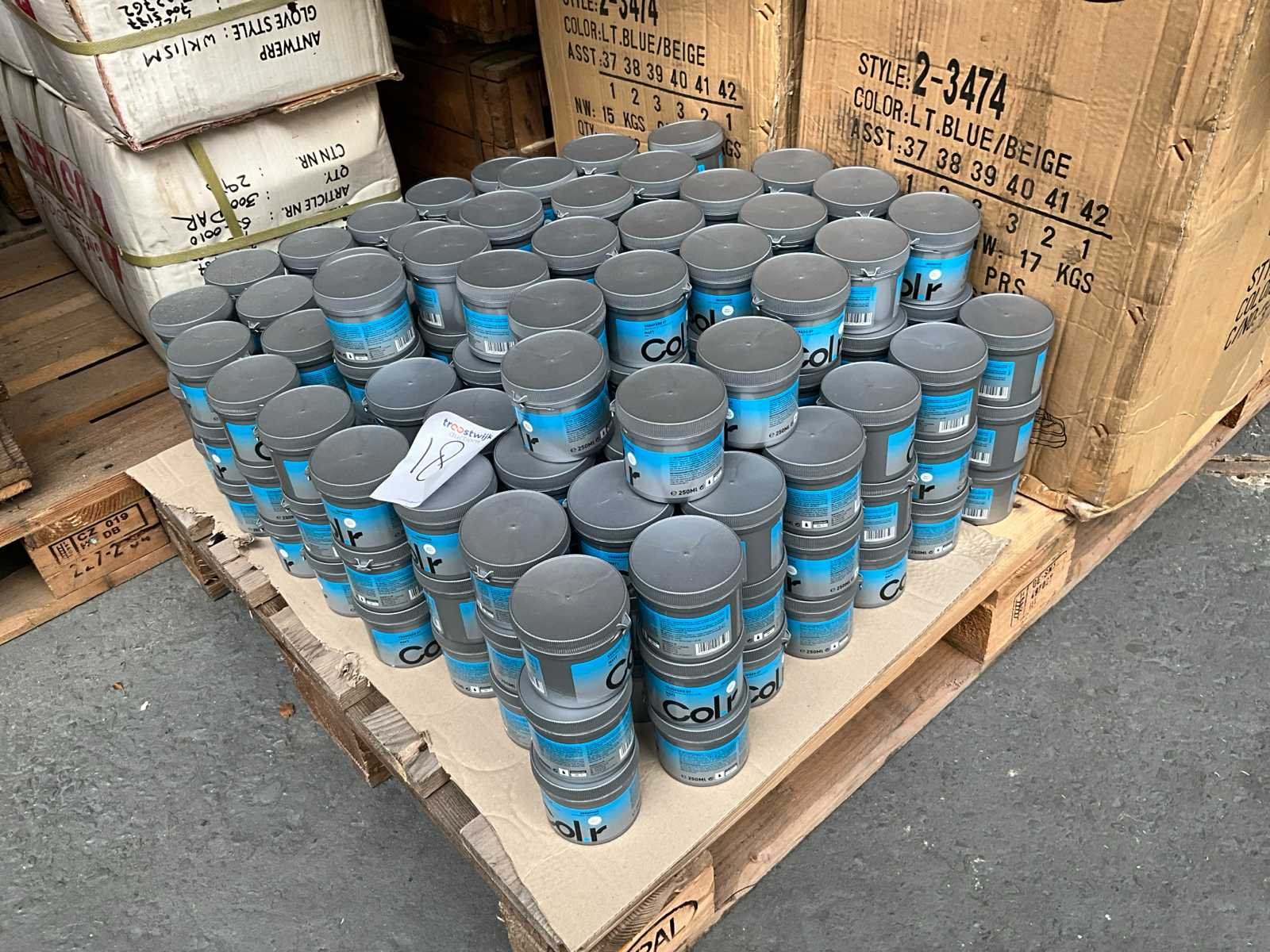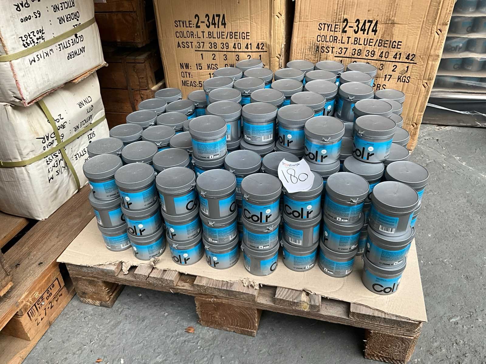Aantal is circa; niet gecontroleerd op maten, aantallen & kleur; Pallet niet bij kavel inbegrepen; Merk: Col.r