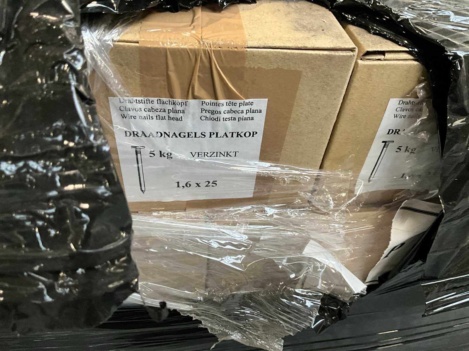 1 pallet spijkers; niet gecontroleerd op maten, aantallen & kleur; Pallet niet bij kavel inbegrepen;