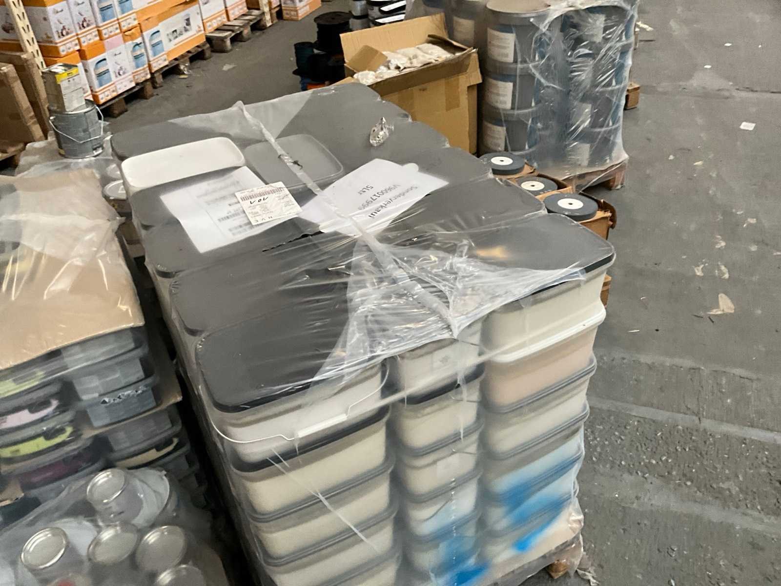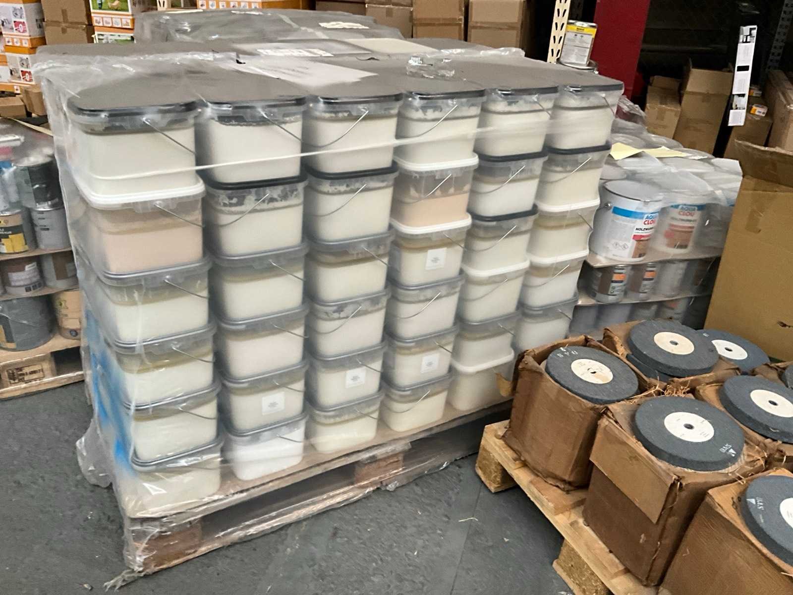 1 pallet , diverse kleuren verf; Pallet niet bij kavel inbegrepen; Aantal niet gecontroleerd ;