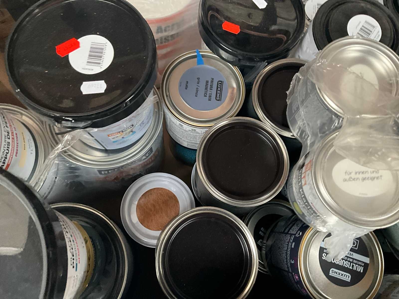 1 pallet , diverse kleuren verf; Pallet niet bij kavel inbegrepen; Aantal niet gecontroleerd ;
