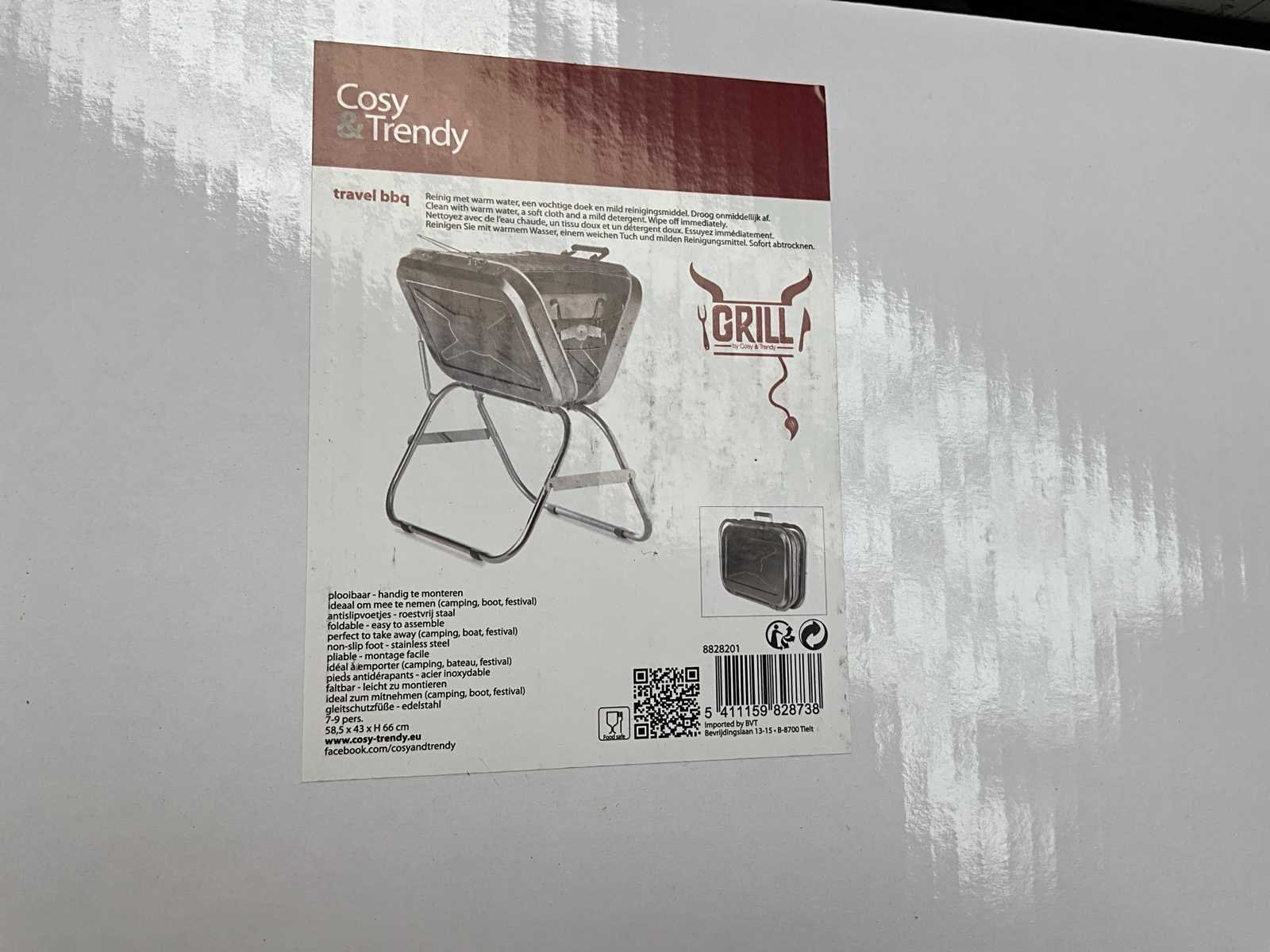 Merk: Cosy&Trendy Kleur: Zilvergrijs Materiaal: Inox / RVS Inhoud: 1 Barbecue 1 rooster Afmeting: 58,5 x 43 x 66 cm Merk: Cosy&Trendy Model: Grill Product type: RVS Travel BBQ Opvouwbaar Gewicht: 7 Lengte: 585 Breedte: 430 Hoogte: 660 Materiaal: metaal