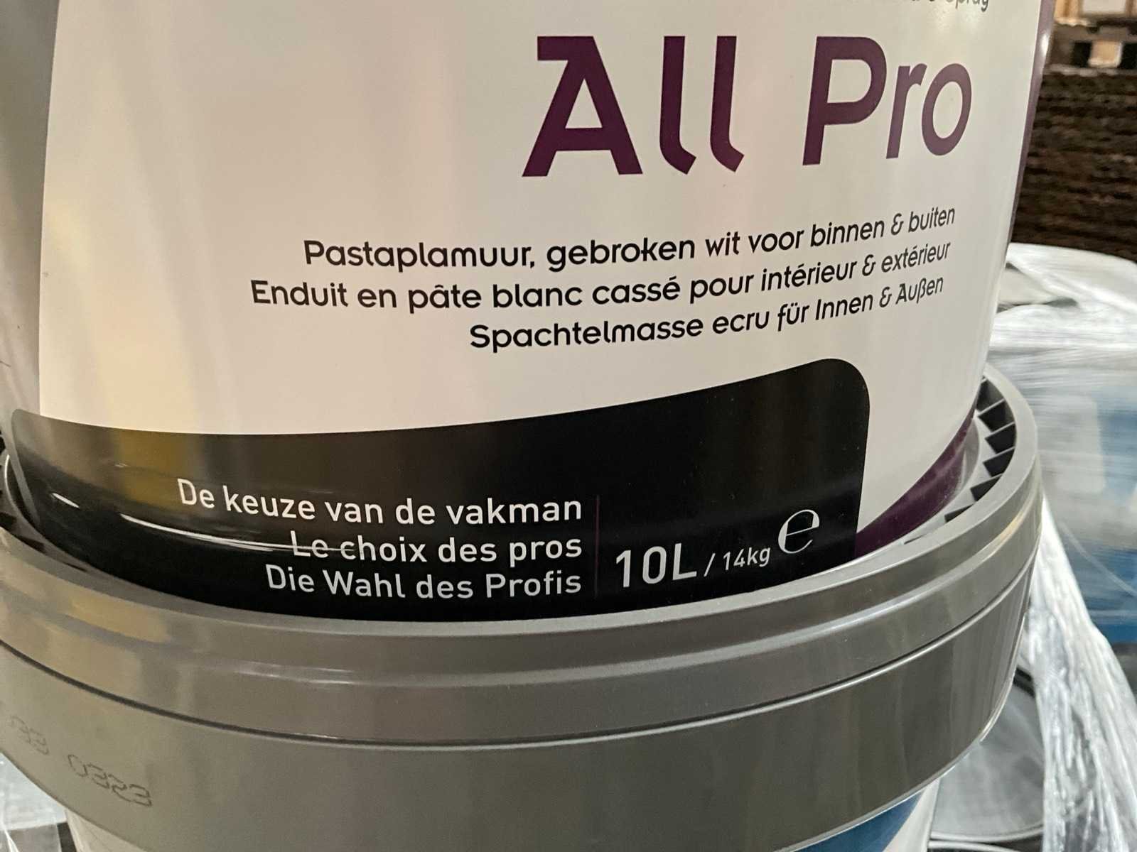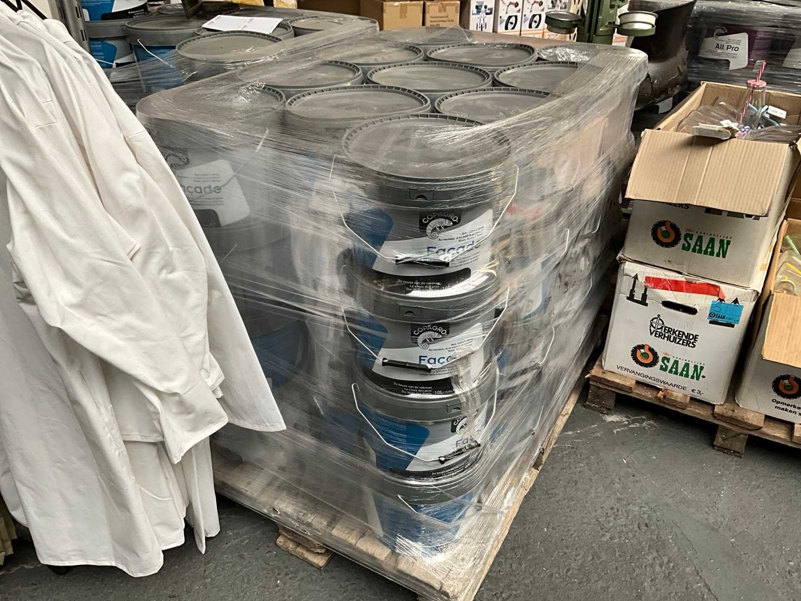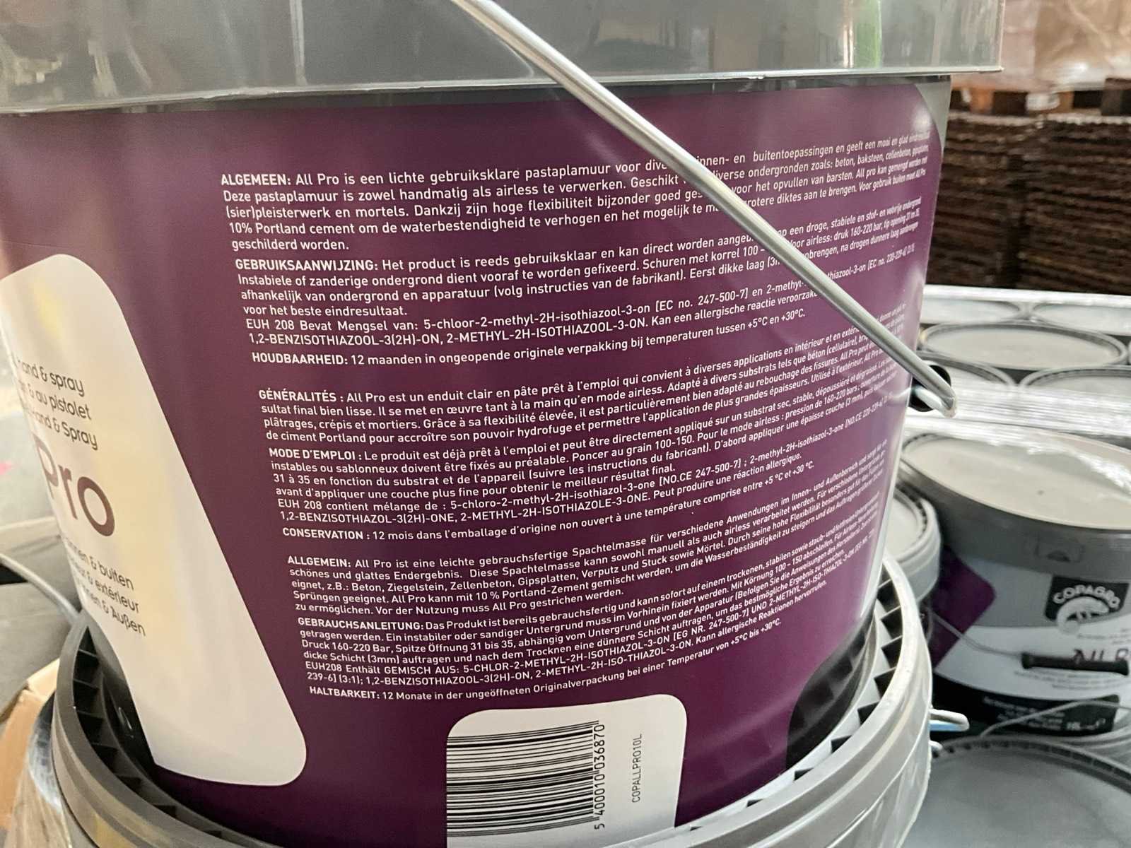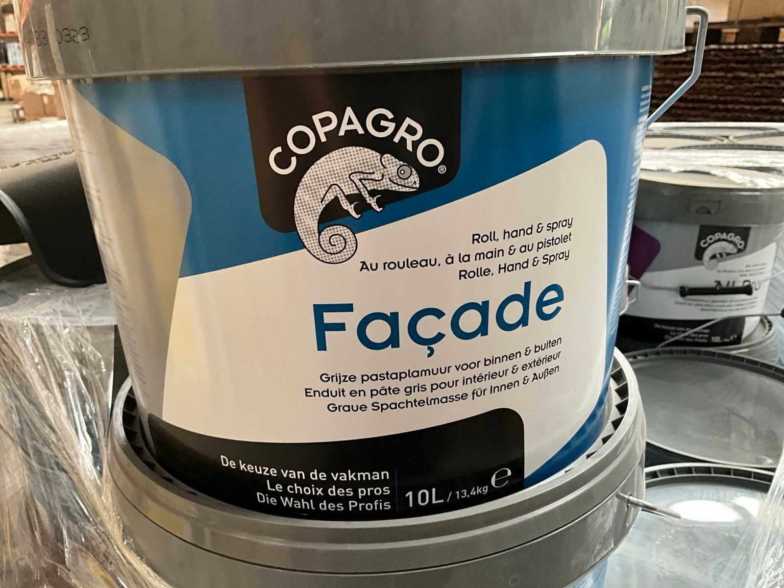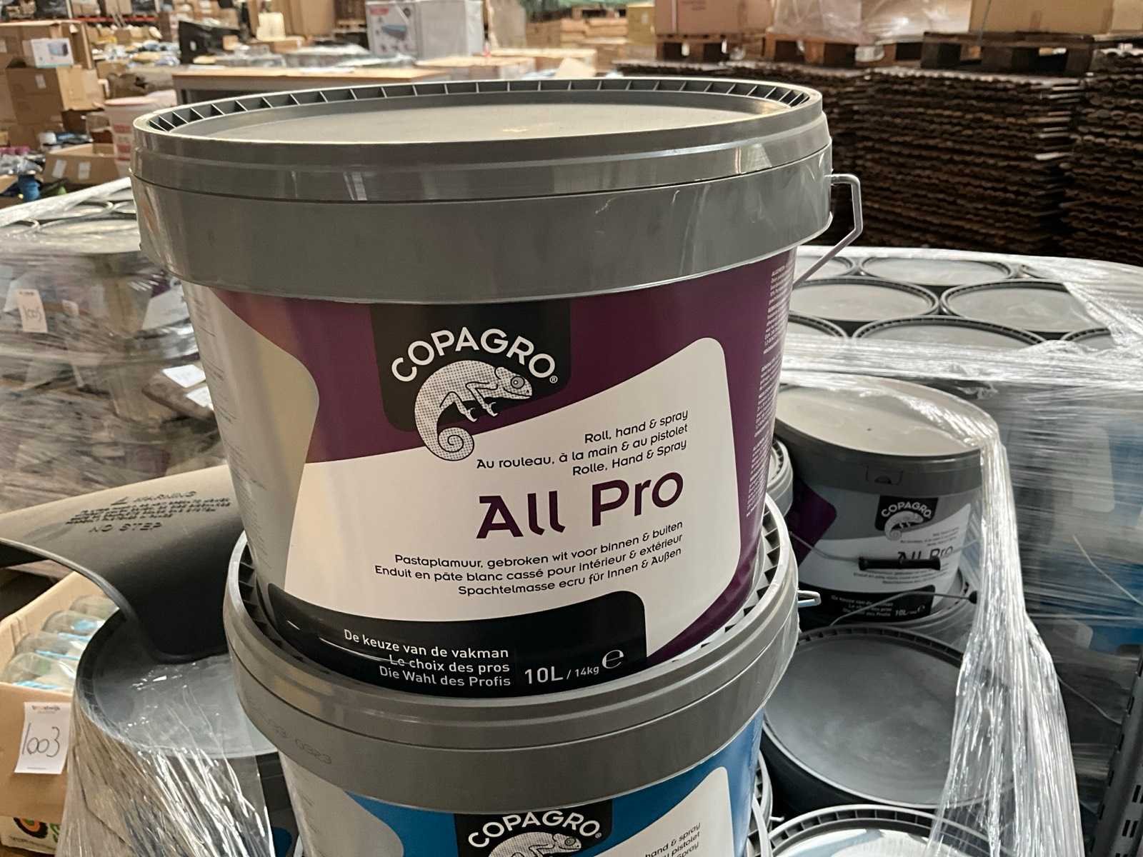 Circa 44 emmers a 10 liter; niet gecontroleerd op maten, aantallen & kleur; Diverse soorten, kleuren en maten verf; Merk: Copagro