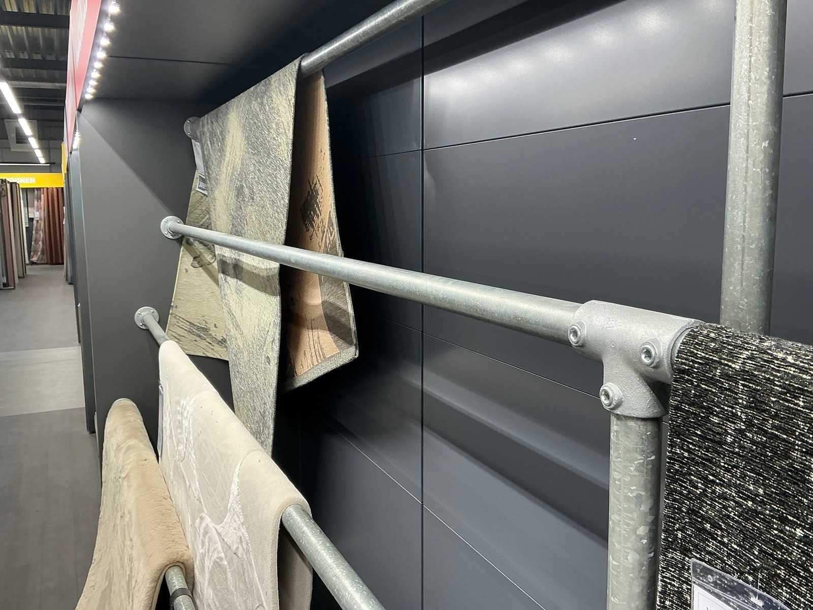 Dit kavel dient door de koper professioneel gedemonteerd te worden. De stelling is opgebouwd met Datec onderdelen. Kavel bestaat uit circa 25 meter stelling Inclusief inhoud. Exclusief stofsamples en vloerkleden. Totale afmeting Breedte: 750mm Totale afmeting Hoogte: 3000mm